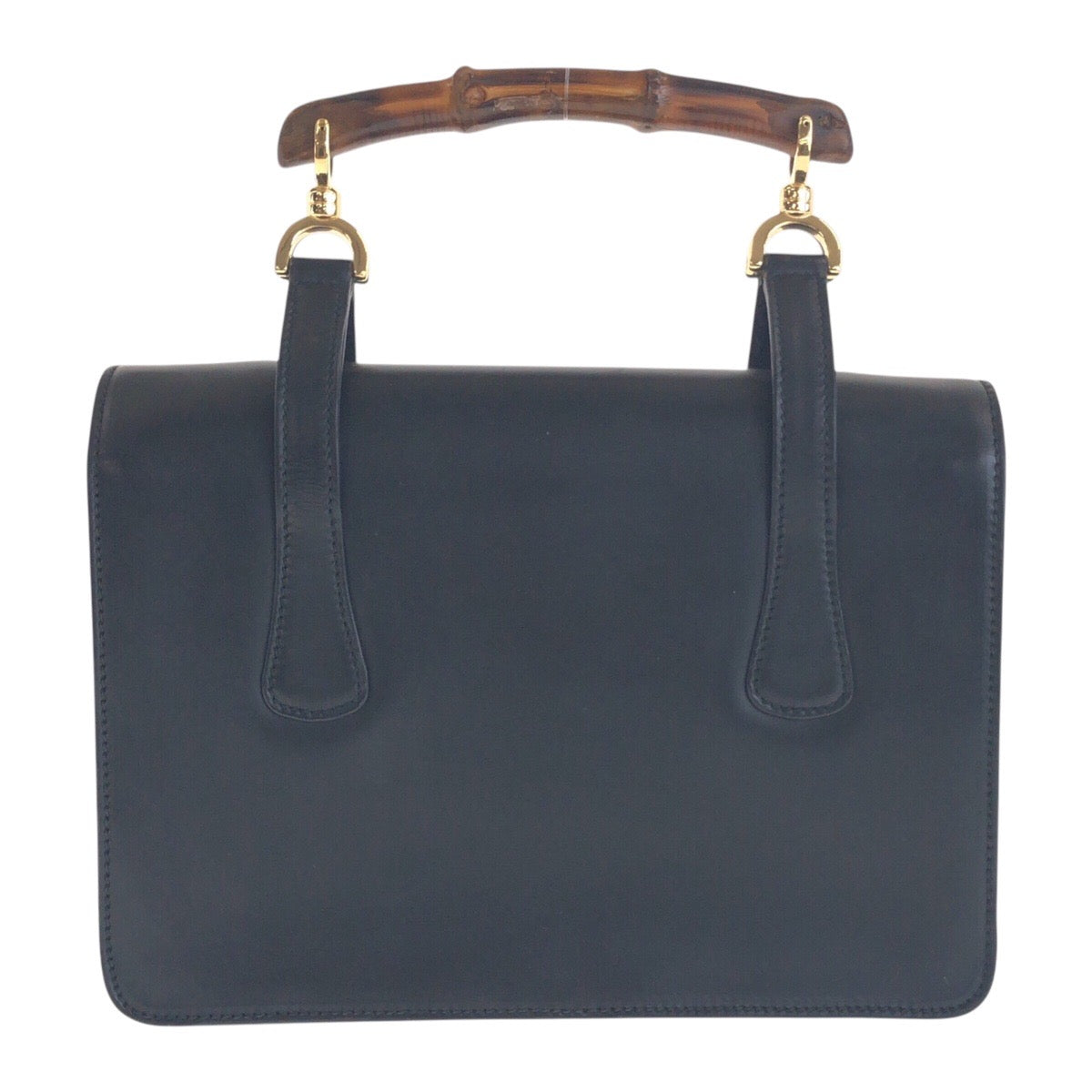 GUCCI Handbag 000 113 0231 leather Black GoldMetal Bamboo Women Used Authentic