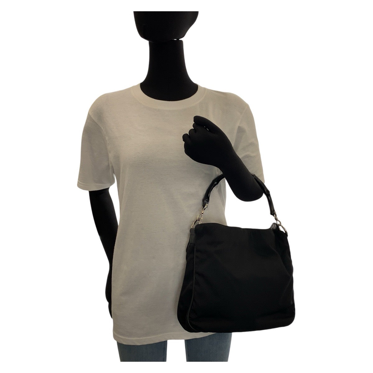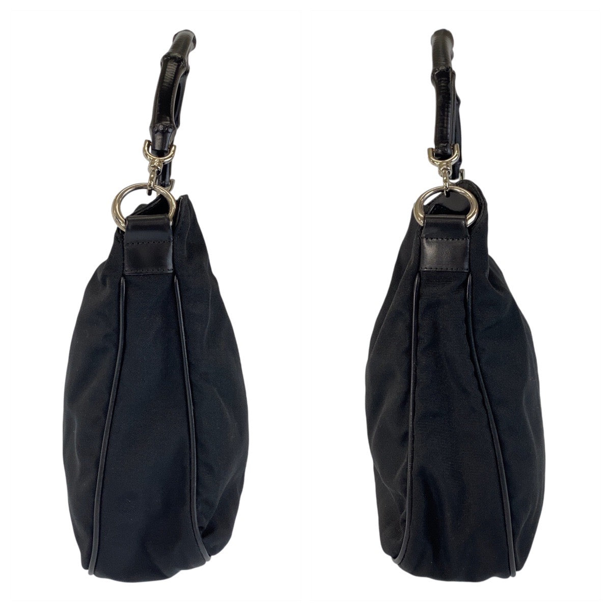 GUCCI Handbag 001 1638 Nylon, Bamboo black Handbag Bamboo Women Used Authentic