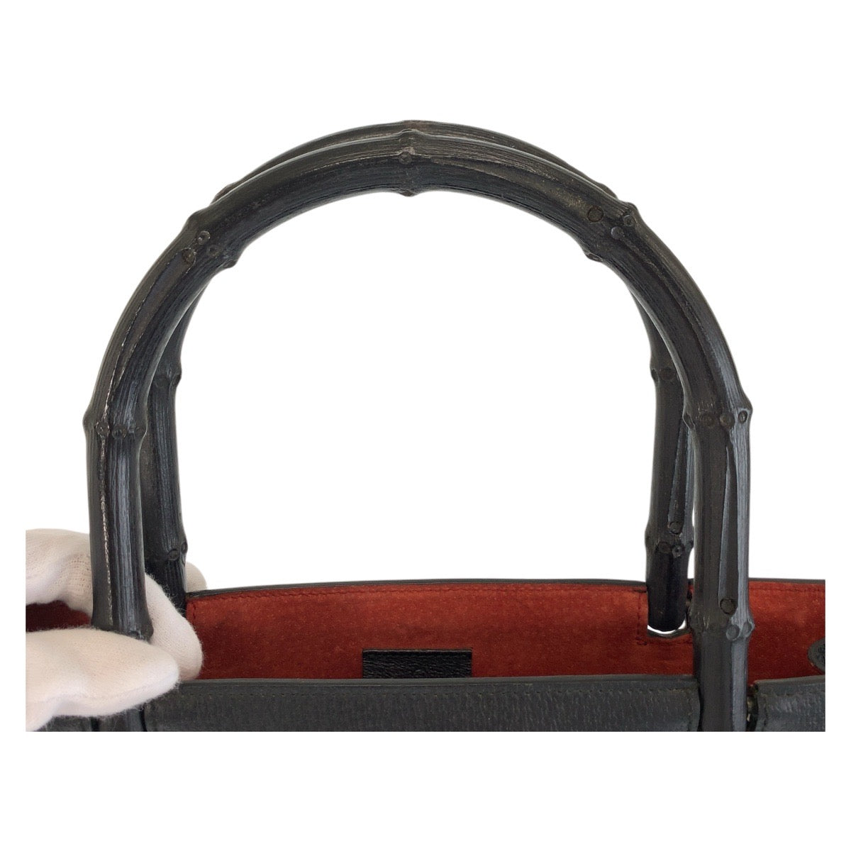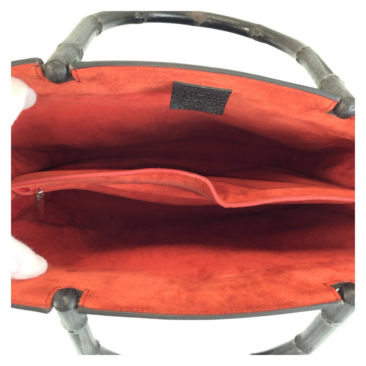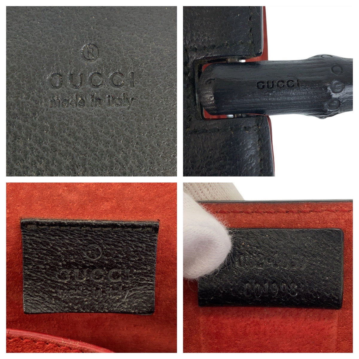 GUCCI Handbag 002 1059 Leather, Bamboo Black black red Bamboo Women Used Authentic