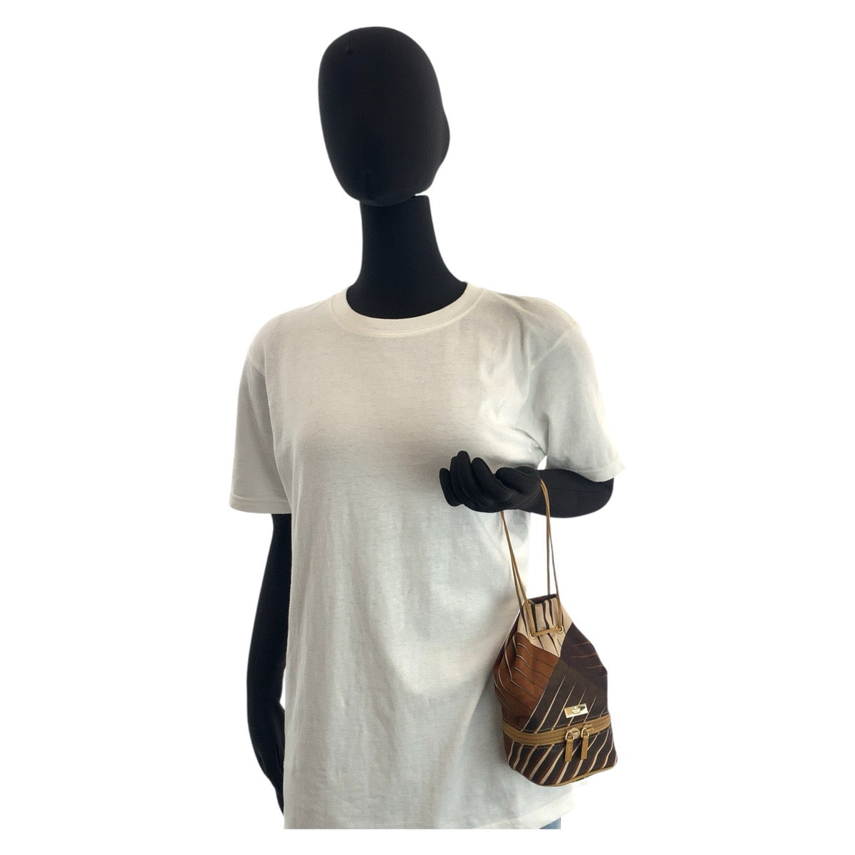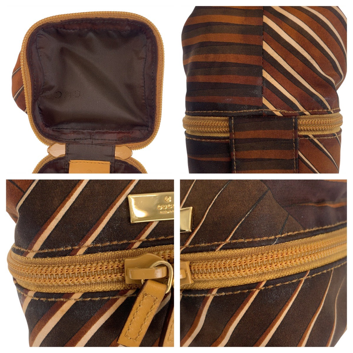 GUCCI Handbag 039 9054 Nylon Brown Gold Metal Handbag pouch Women Used Authentic