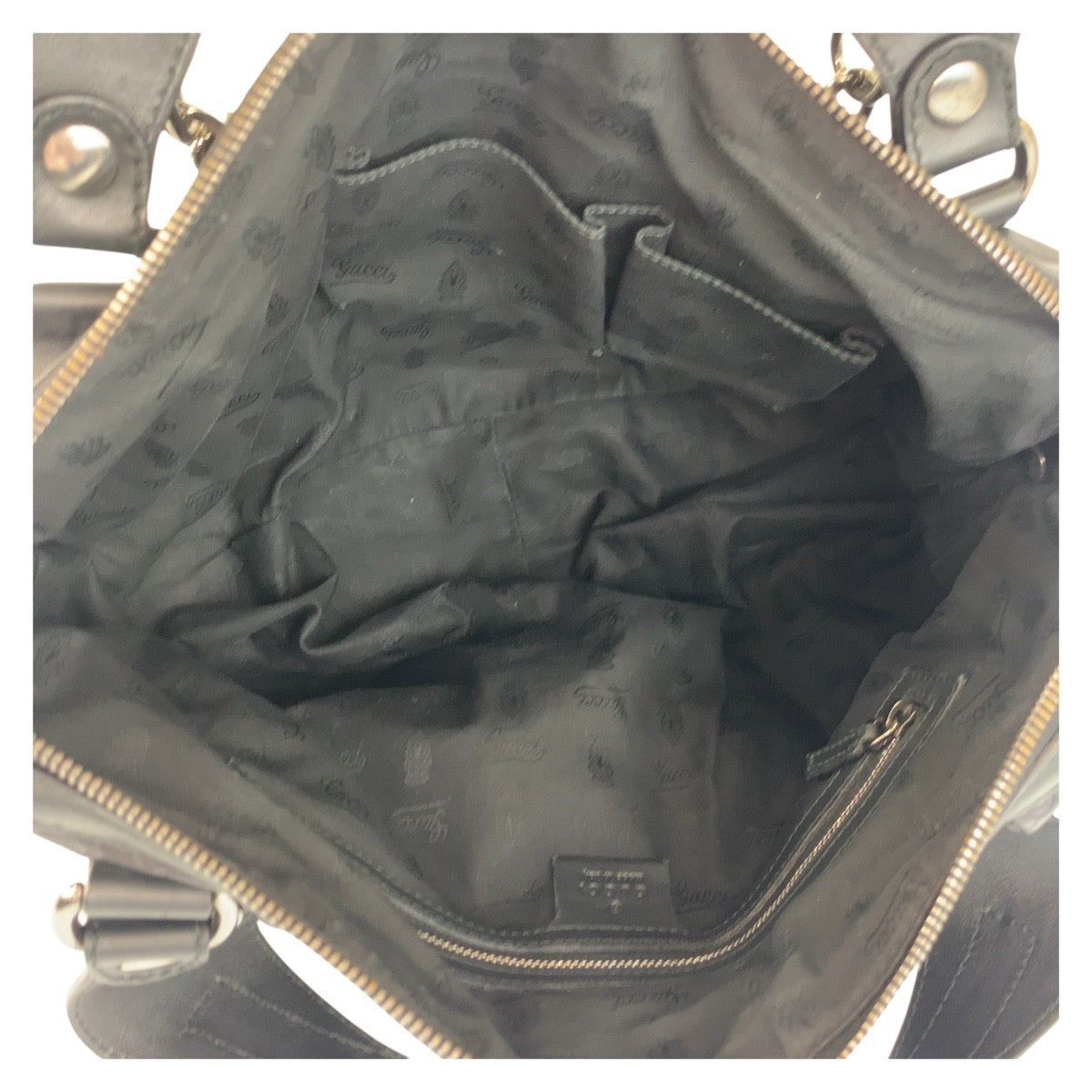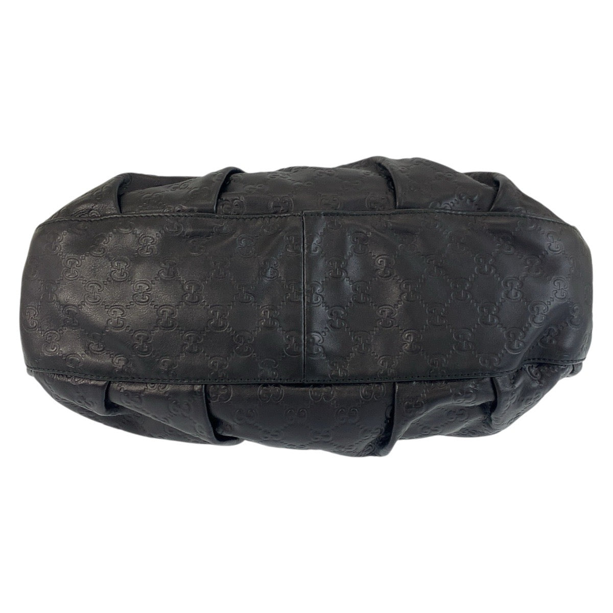 GUCCI Handbag 228594 leather Black SilverMetal Handbag Shoulder Bag Horsebit Guccissima Women Used Authentic
