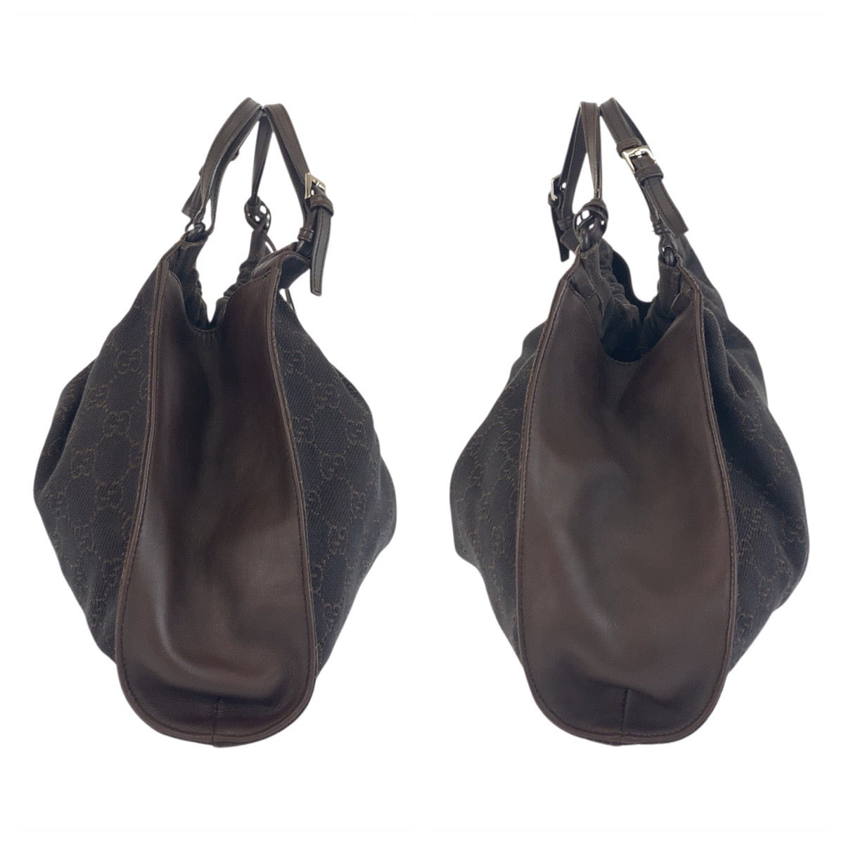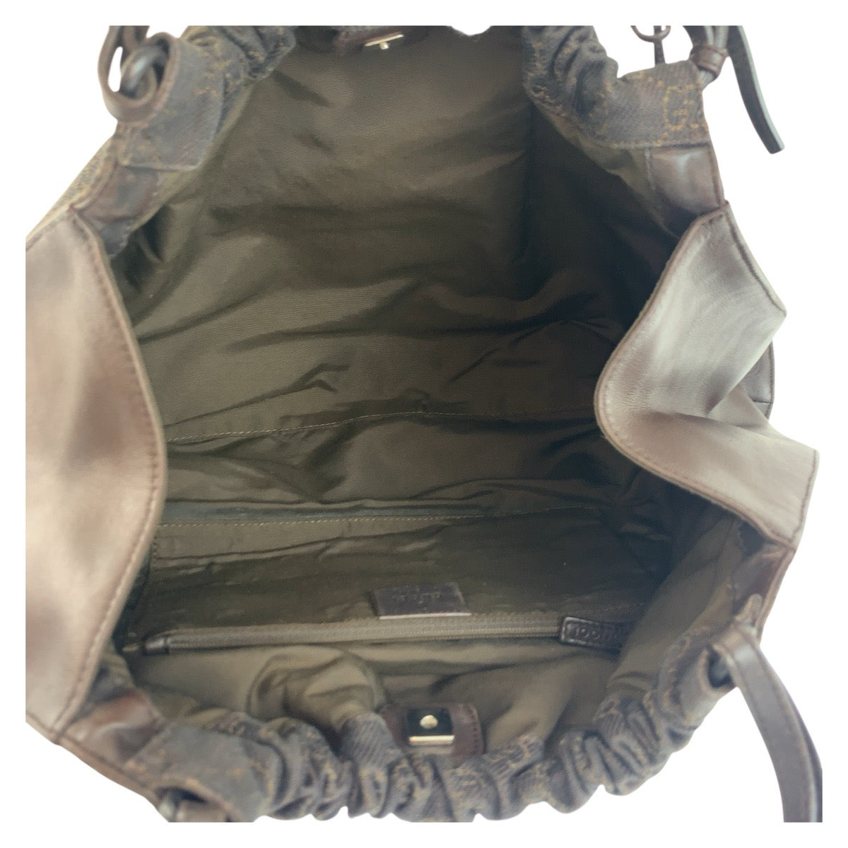 GUCCI Handbag 76554 GG canvas Brown Silver Metal Handbag Tote Bag Women Used Authentic