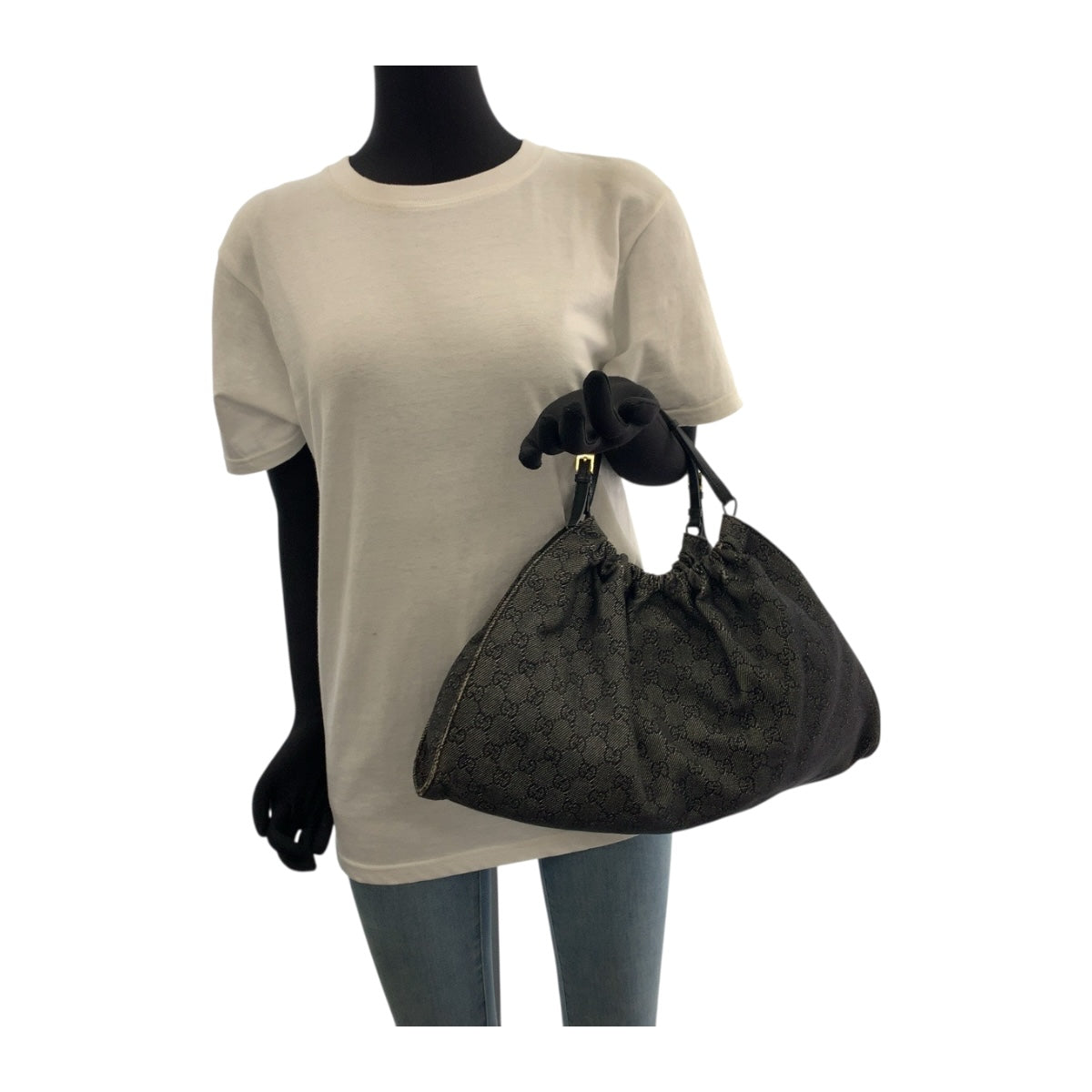 GUCCI Handbag 76554 GG canvas Grey Black Gold Metal