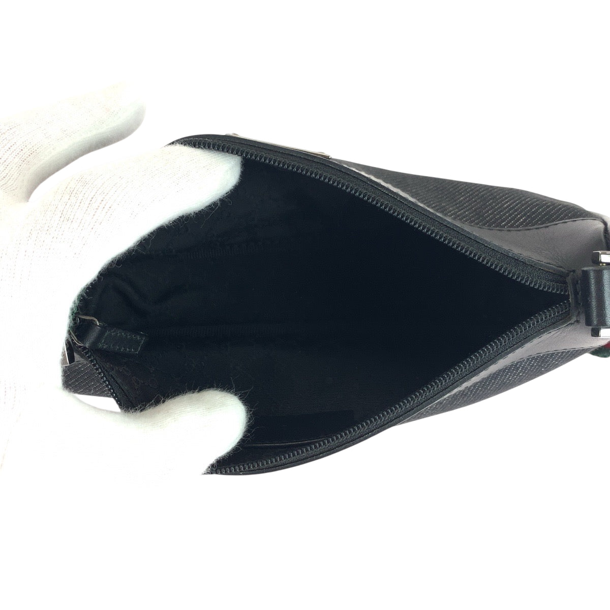 GUCCI Handbag 92320 Canvas, Leather Black SilverMetal Handbag accessory pouch Sherry line Women Used Authentic
