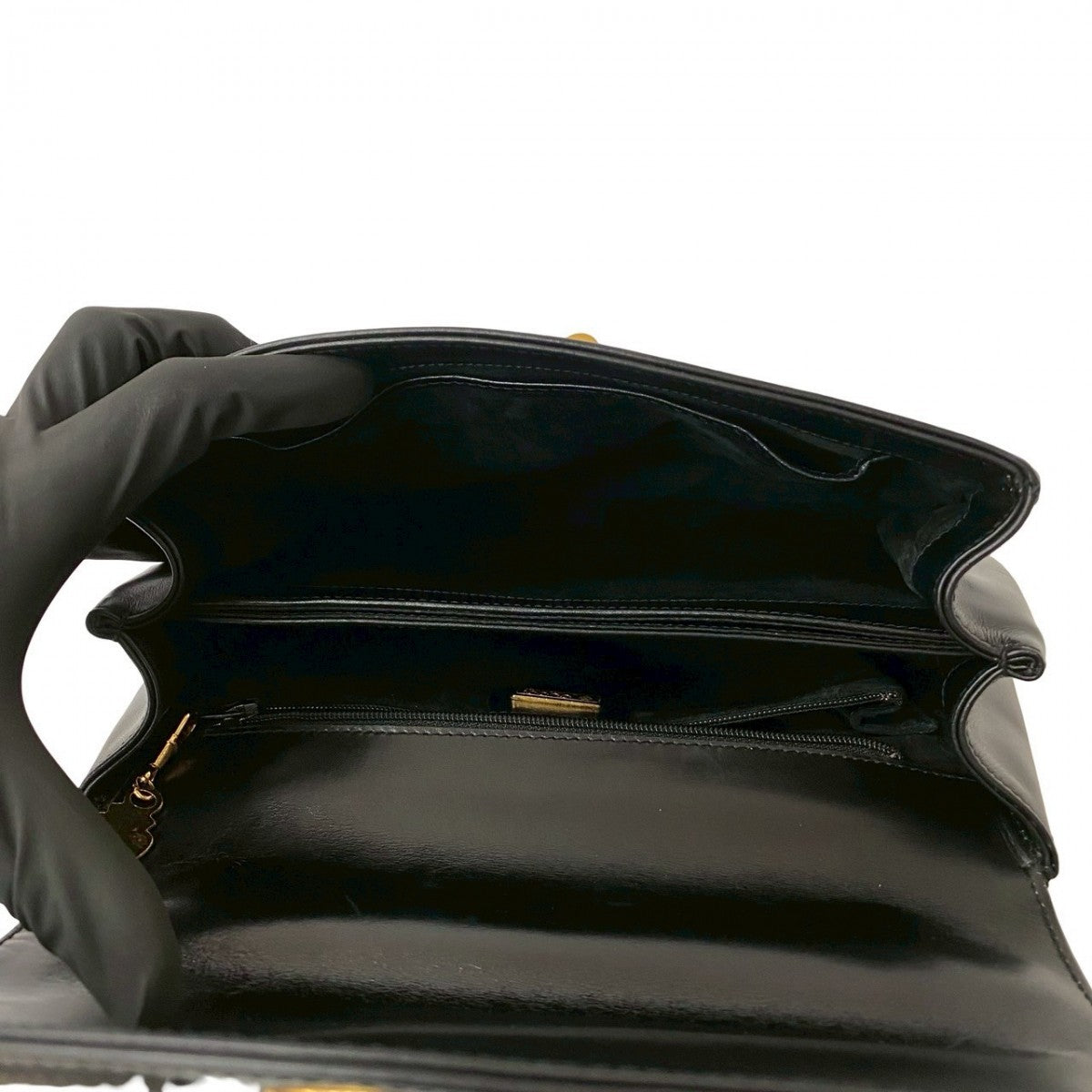 GUCCI Handbag Calfskin, Leather black GG logo Metal Women Used Authentic