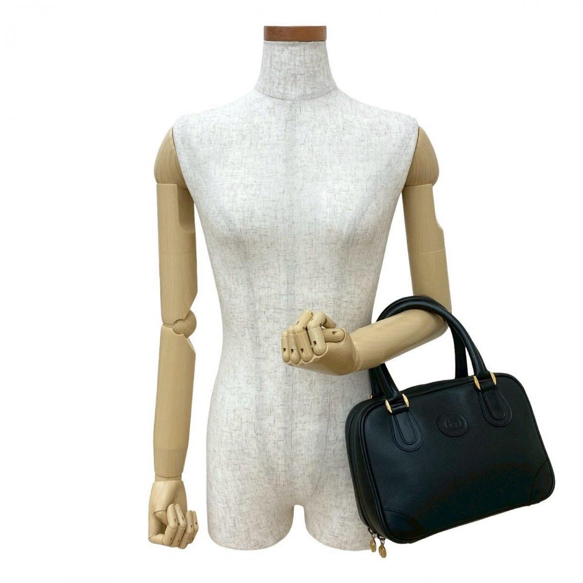 GUCCI Handbag leather black GG logo Women Used Authentic