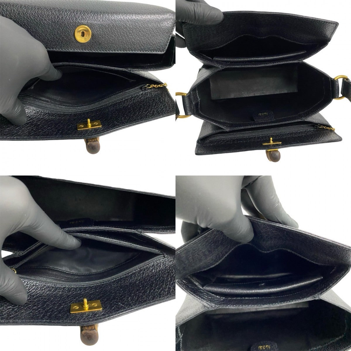 GUCCI Handbag leather black Turn lock Bamboo Women Used Authentic