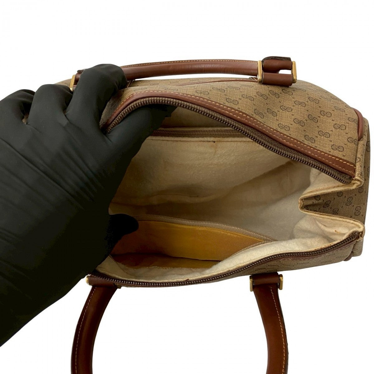 GUCCI Handbag Leather, PVC Brown Micro GG logo Metal Women Used Authentic