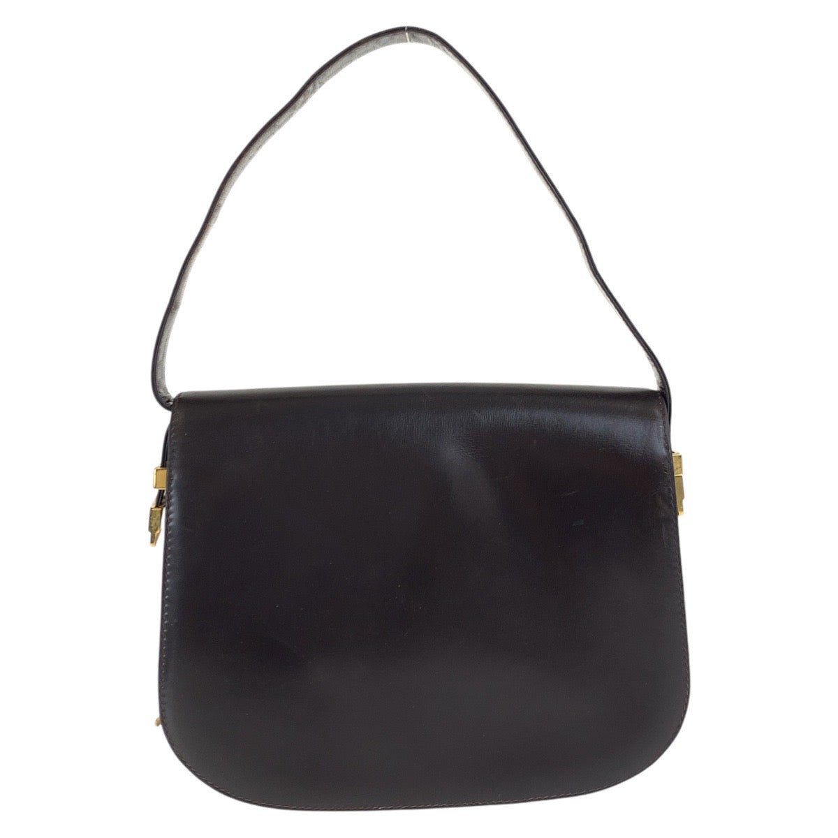 GUCCI Handbag leather Dark Brown Gold Metal Old Gucci Women Used Authentic