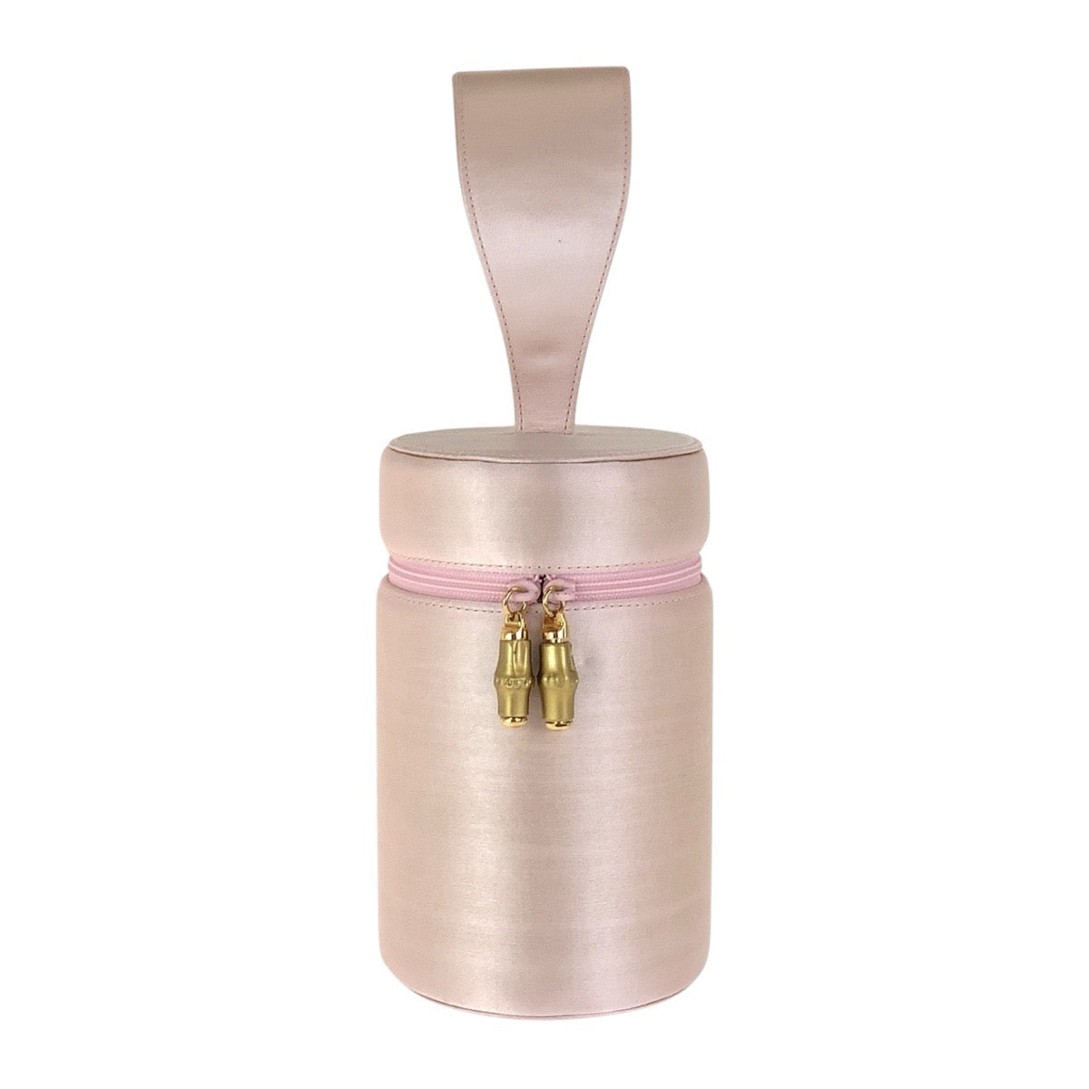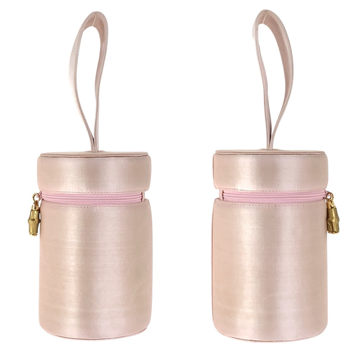 GUCCI Handbag Satin Pink Gold Metal Handbag vanity bag Bamboo Women Used Authentic