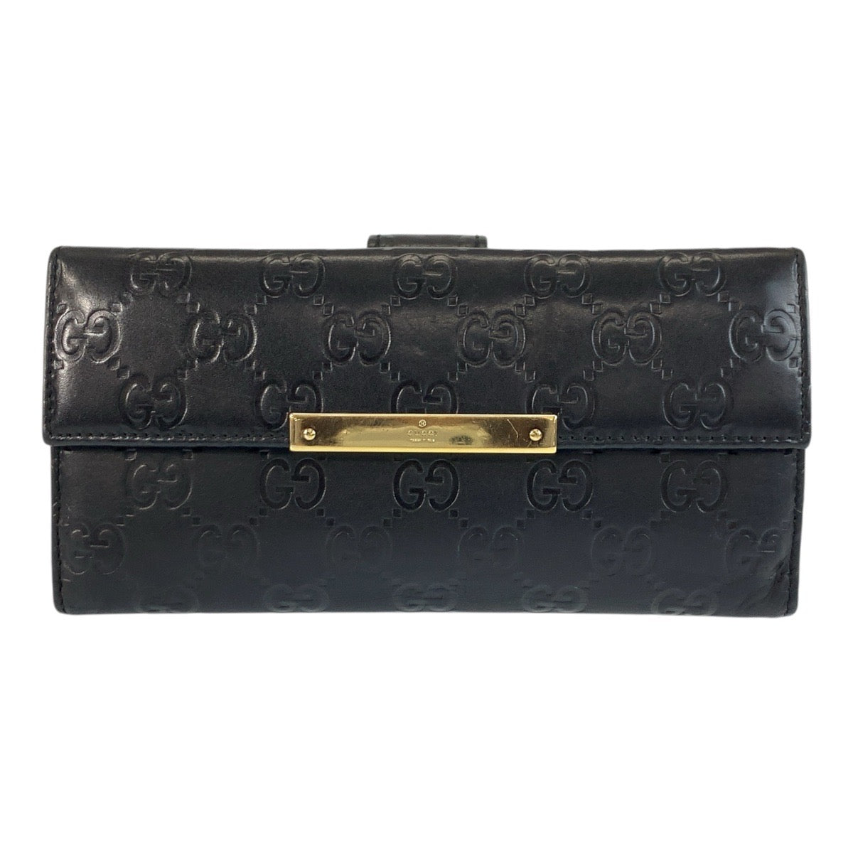 GUCCI Long Wallet Purse 112715 leather Black GoldMetal Long Wallet Purse Guccisima Women Used Authentic