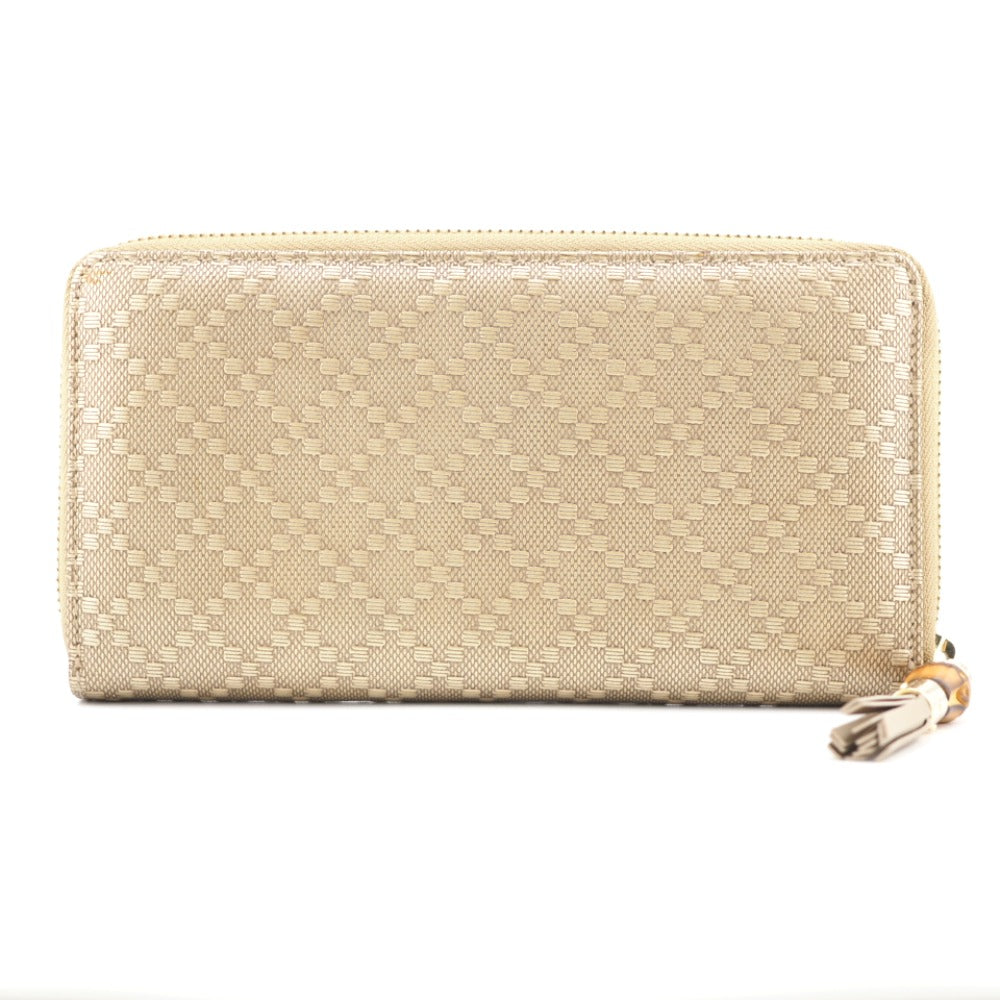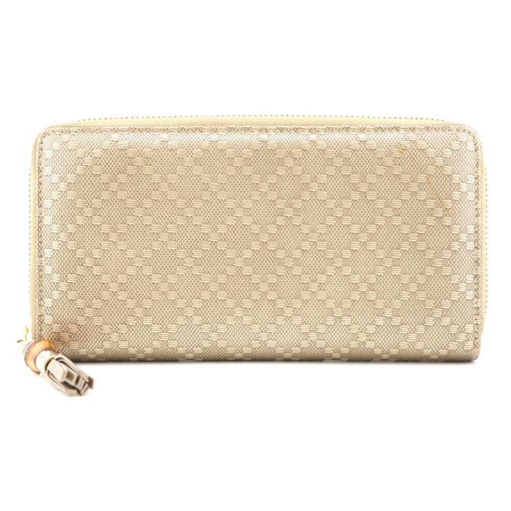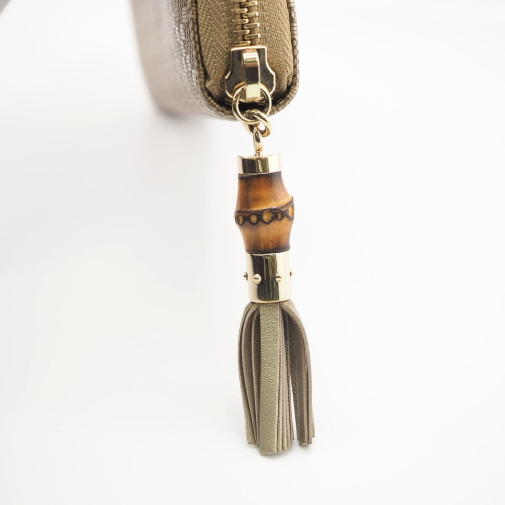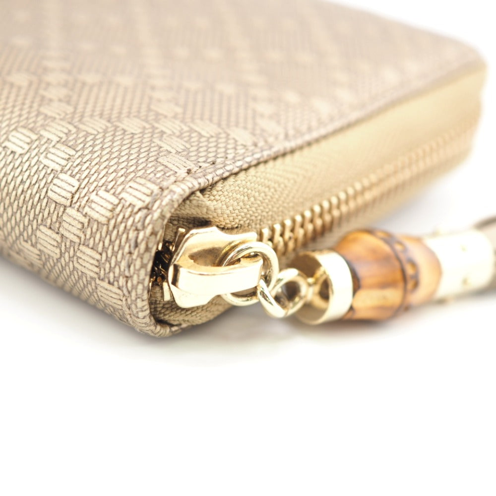 GUCCI Long Wallet Purse 224253 embossed calf leather Champagne Zip Around Bamboo Diamante Women Used Authentic