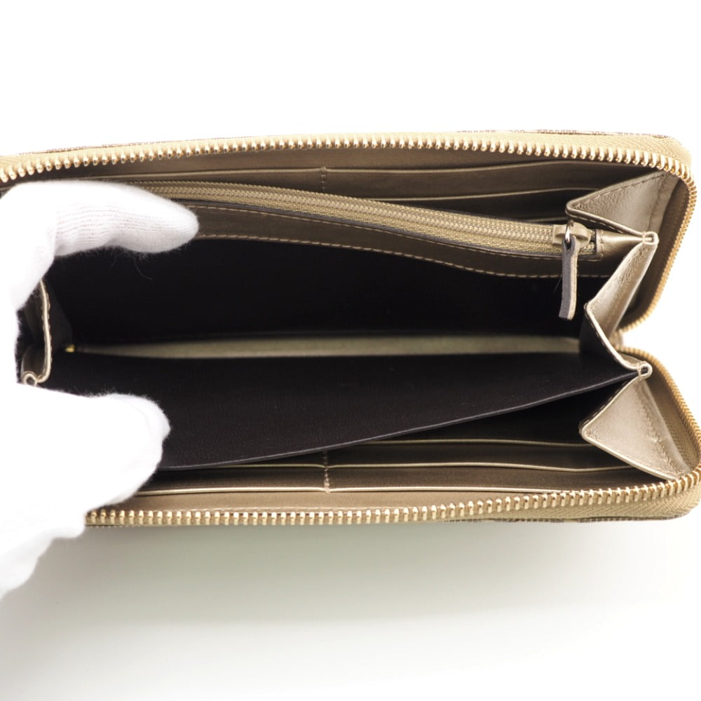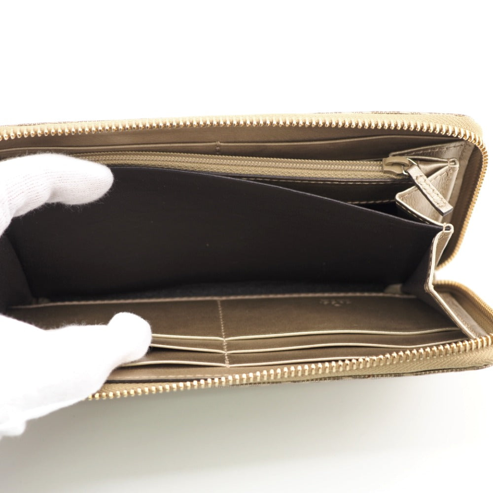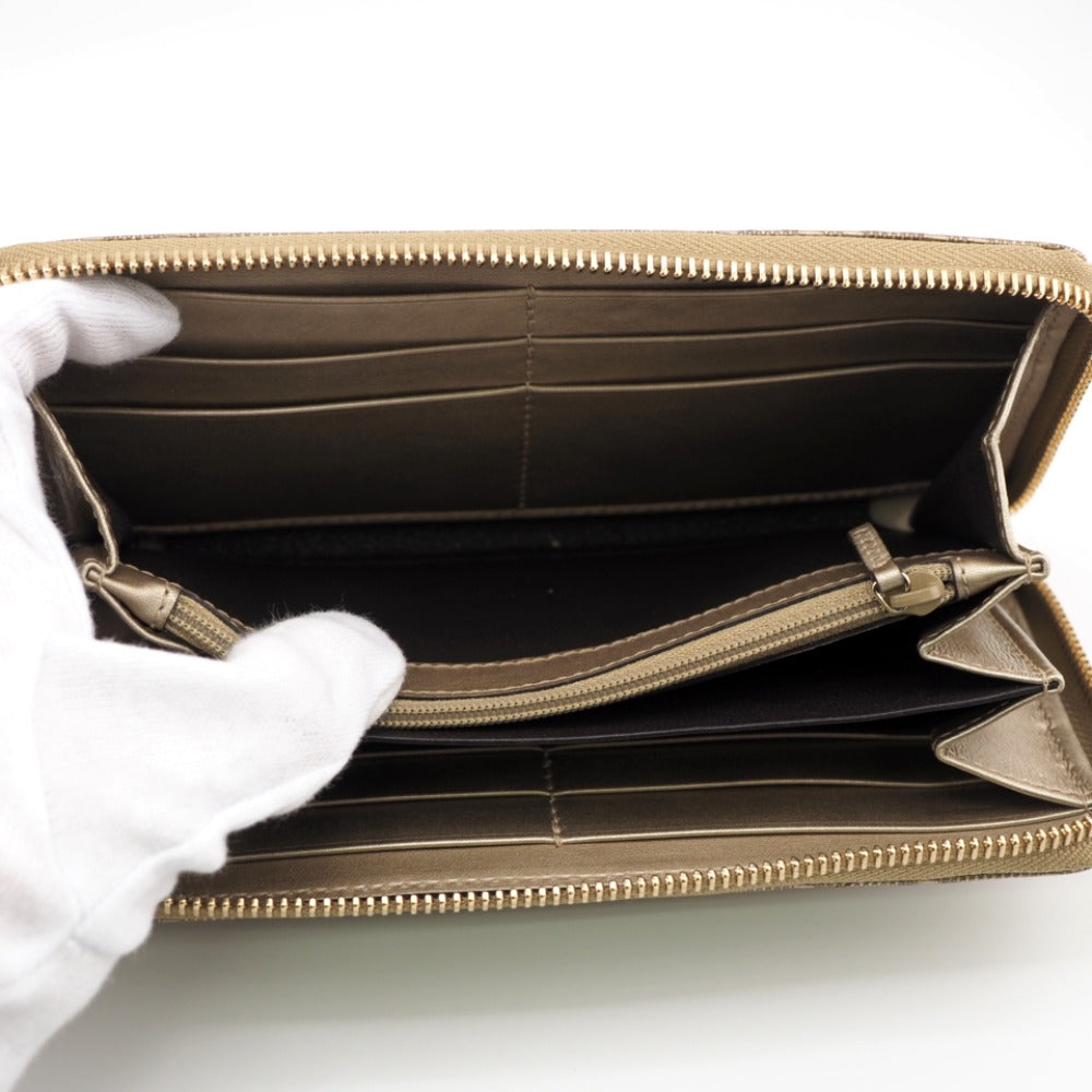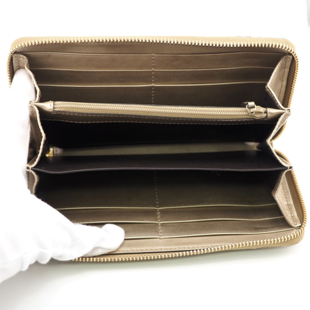 GUCCI Long Wallet Purse 224253 embossed calf leather Champagne Zip Around Bamboo Diamante Women Used Authentic