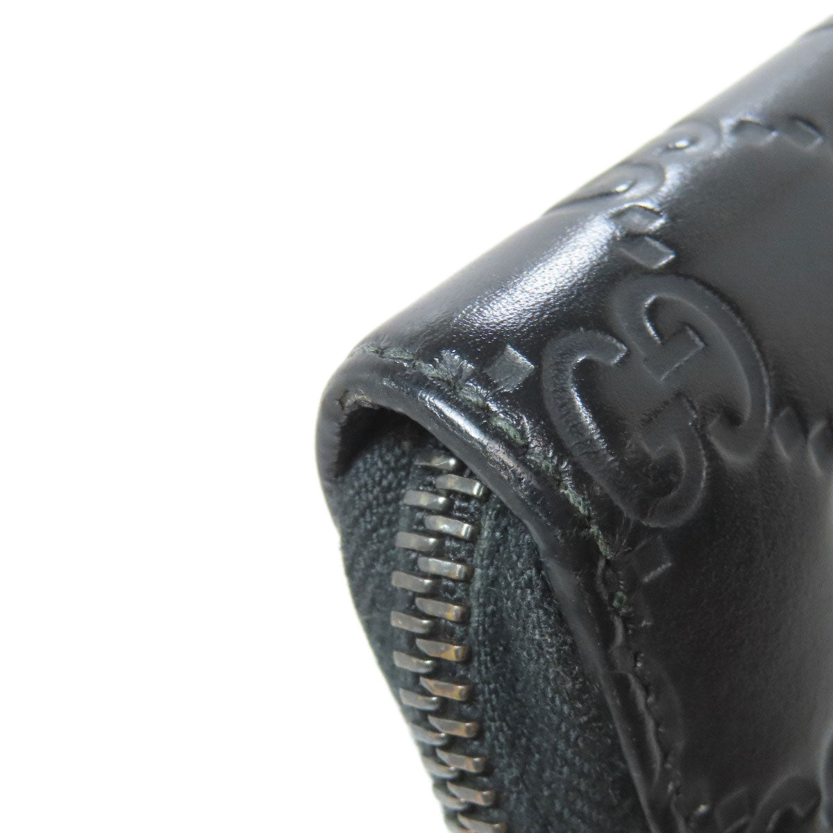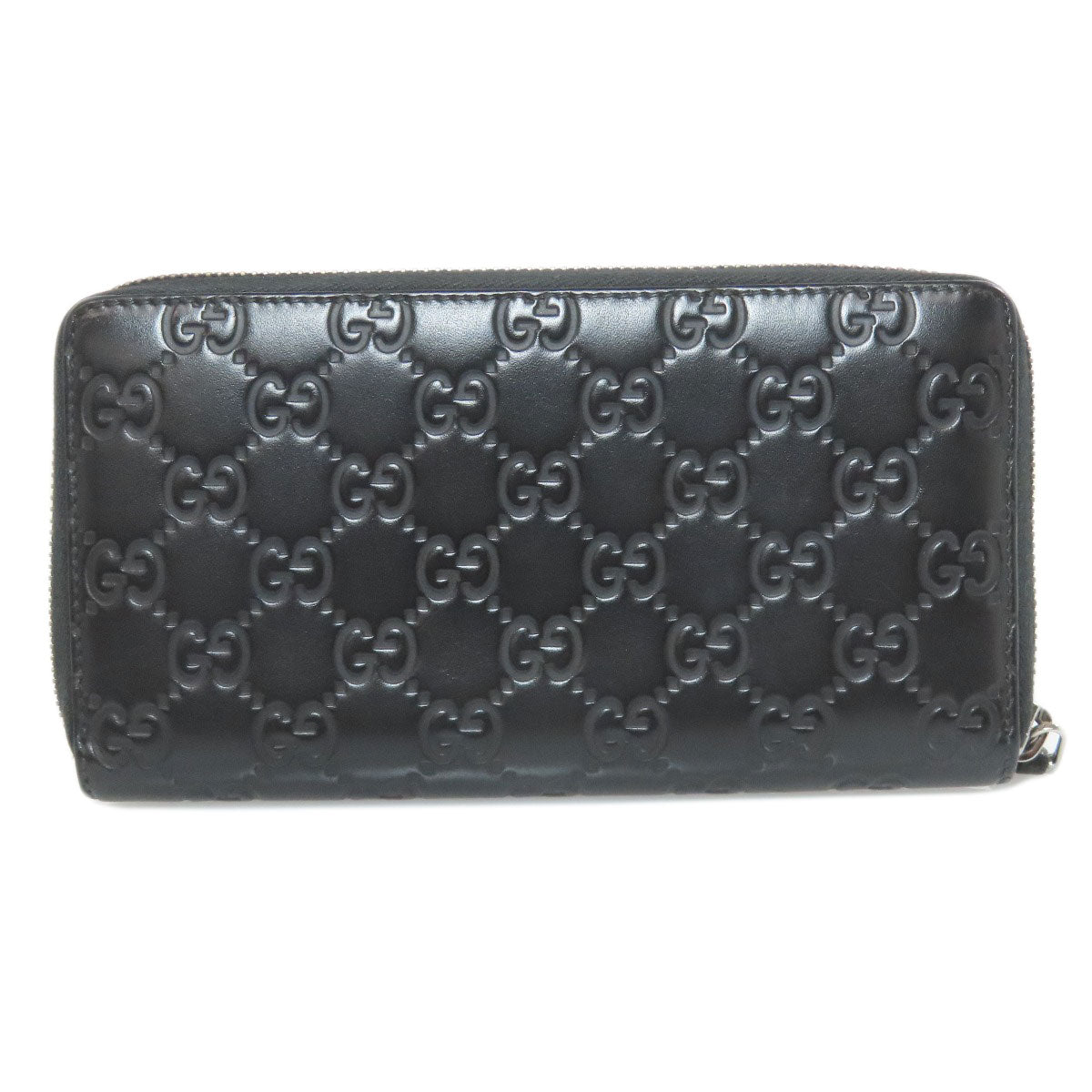 GUCCI Long Wallet Purse 307987 leather black Zip Around GG Signature Shima Women Used Authentic