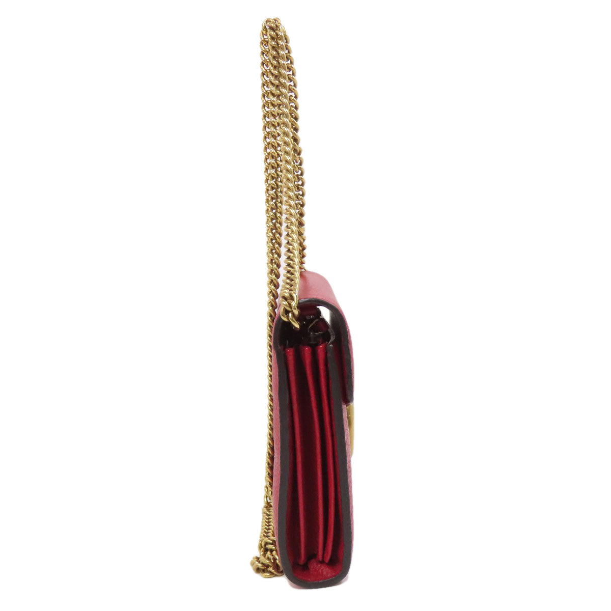 GUCCI Long Wallet Purse 401232 leather Red GG Marmont Chain Wallet Women Used Authentic