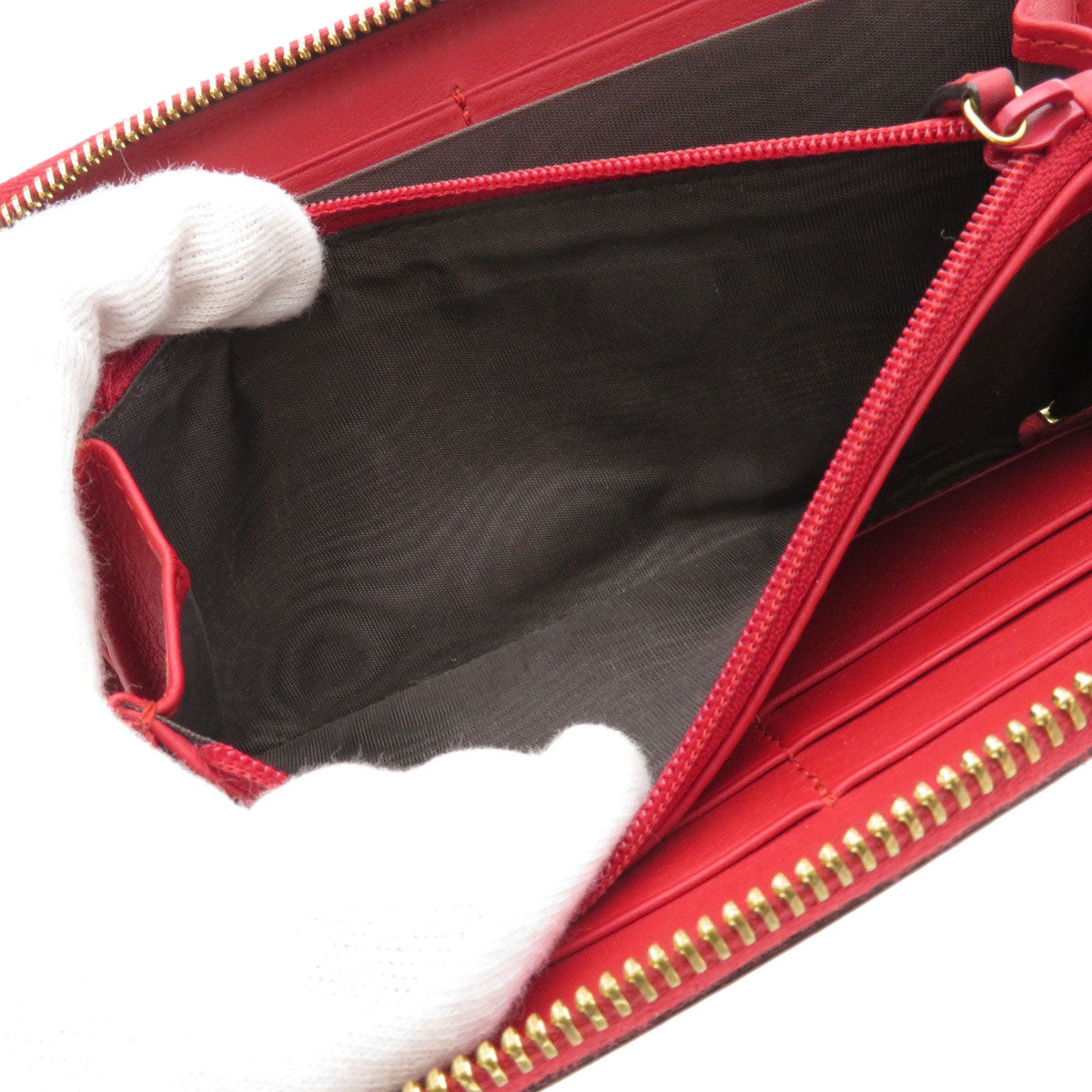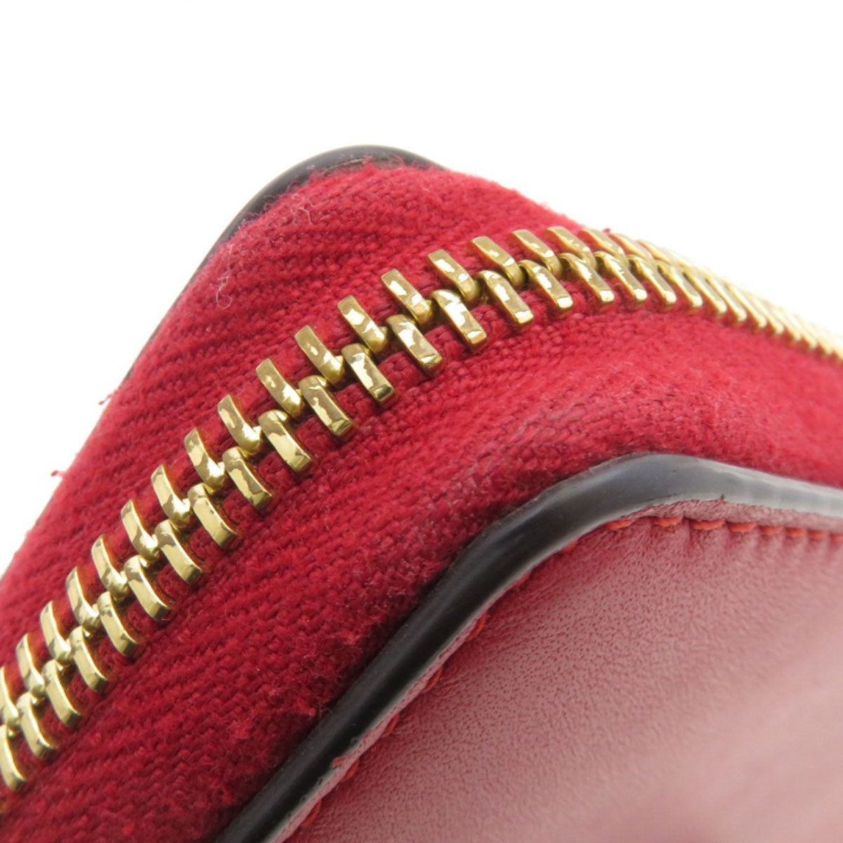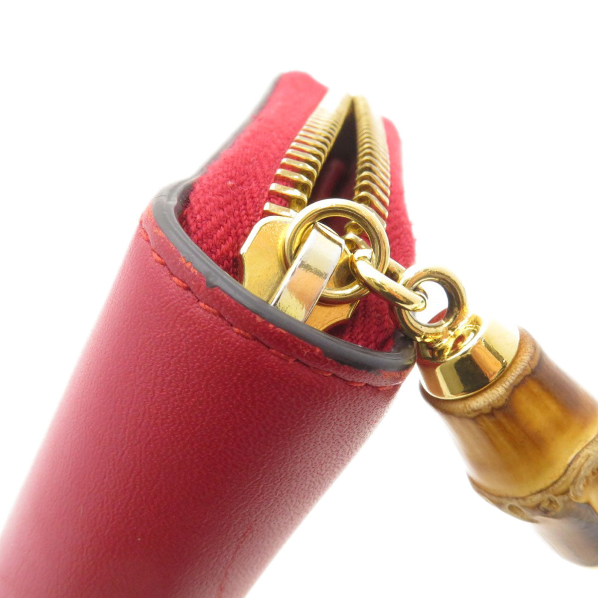 GUCCI Long Wallet Purse 453158 Calfskin Red Bamboo Women Used Authentic