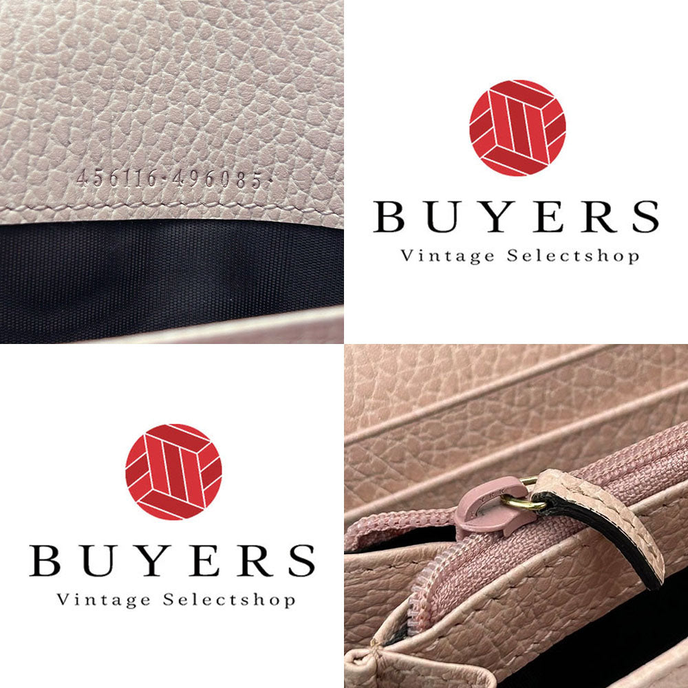 GUCCI Long Wallet Purse 456116 leather pink Double G GG Marmont Women Used Authentic