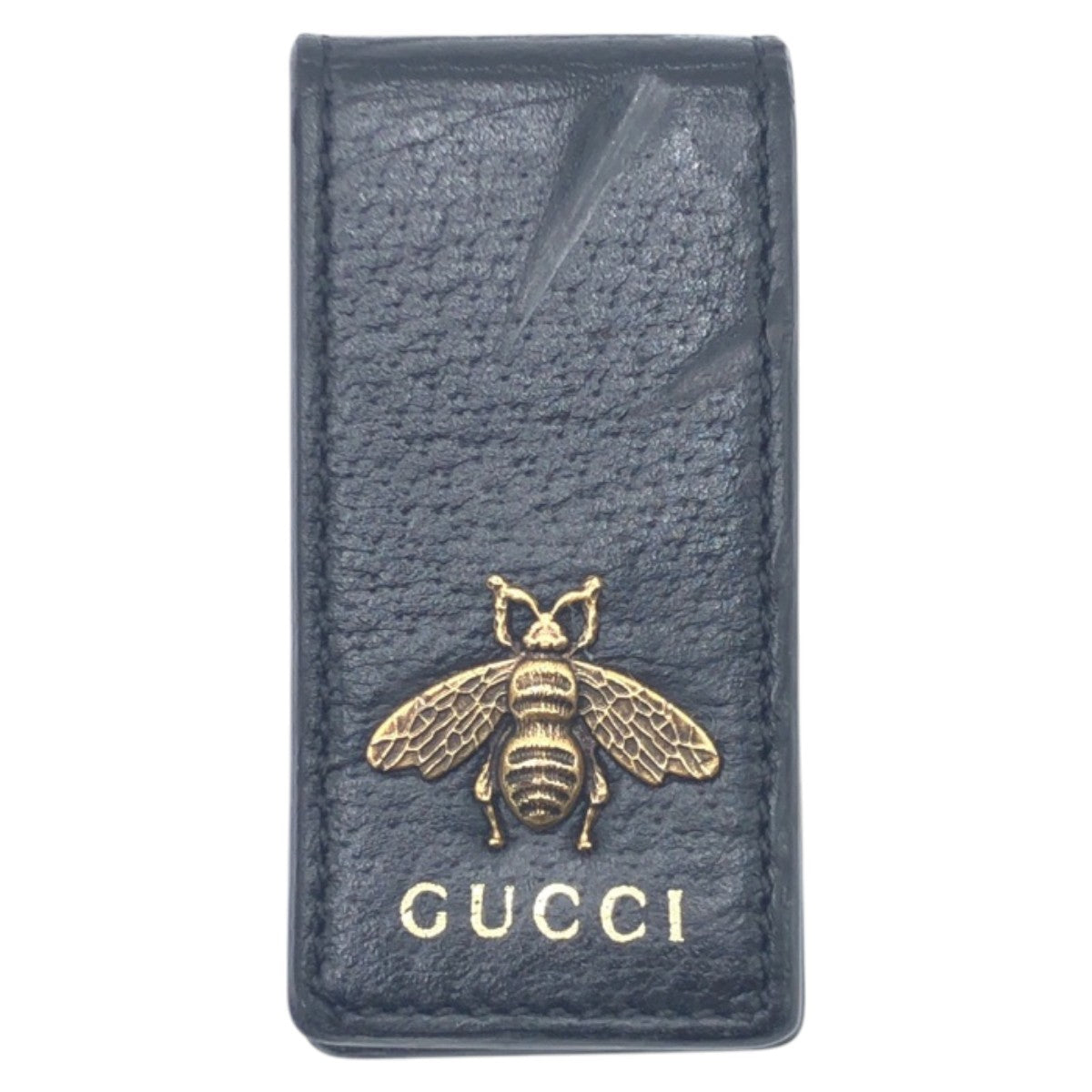 GUCCI Money clip leather black black gold Money Clip Unisex Animalie Bee mens Used Authentic