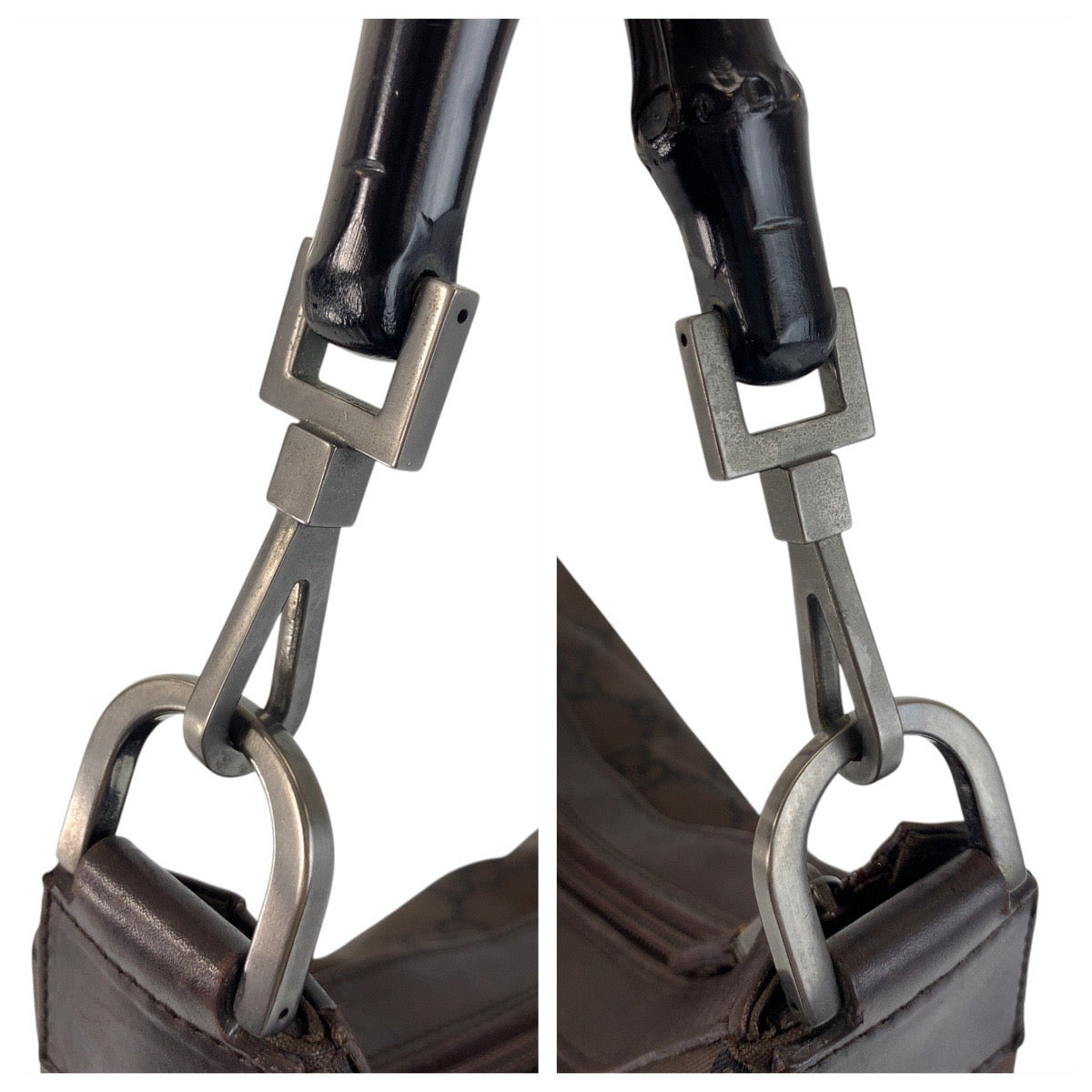 GUCCI Shoulder Bag 000 0531 Nylon Brown Bamboo GG pattern Women Used Authentic
