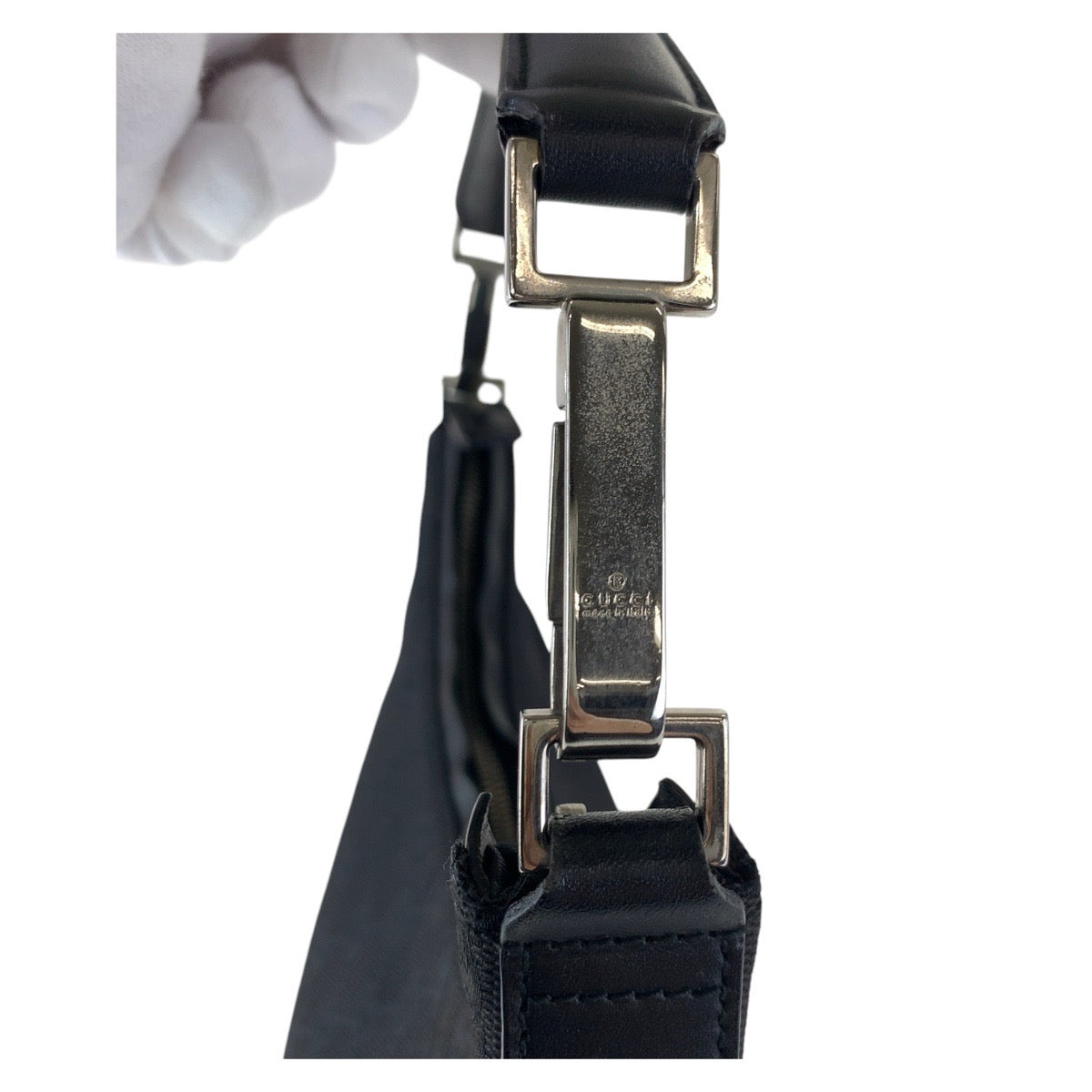GUCCI Shoulder Bag 000 0602 GG canvas, leather Black SilverMetal Hobo Shoulder Bag Women Used Authentic