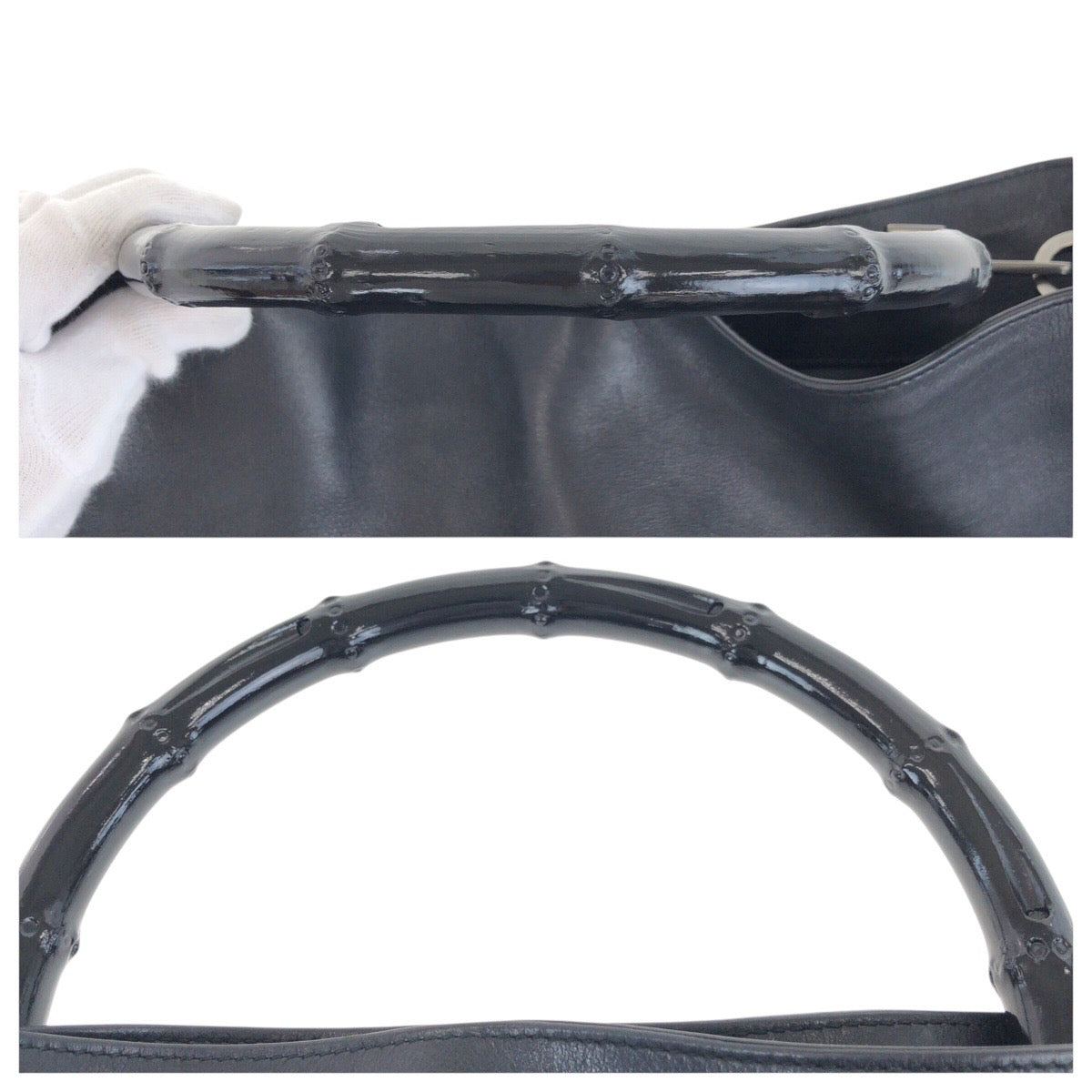 GUCCI Shoulder Bag 001 1577 leather Black SilverMetal Bamboo Women Used Authentic