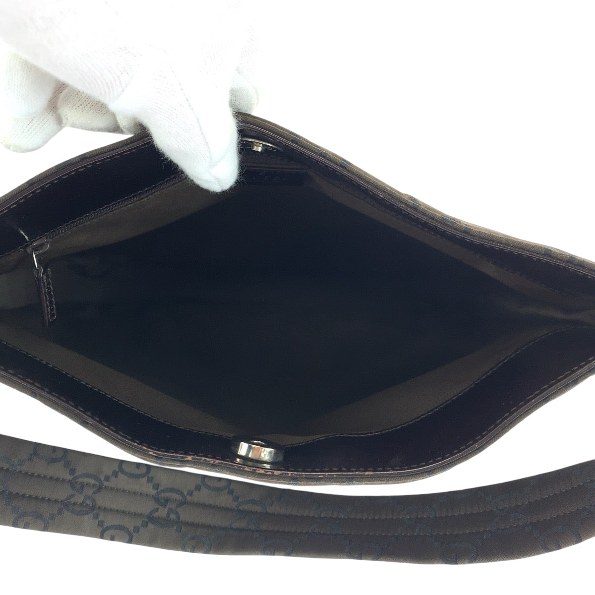 GUCCI Shoulder Bag 001 3166 Nylon Dark Brown SilverMetal One Shoulder Bag Women Used Authentic