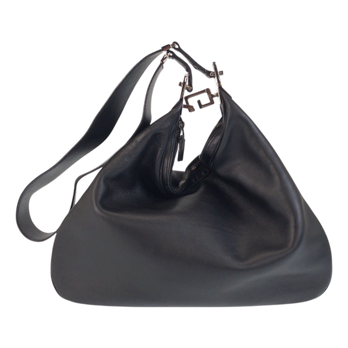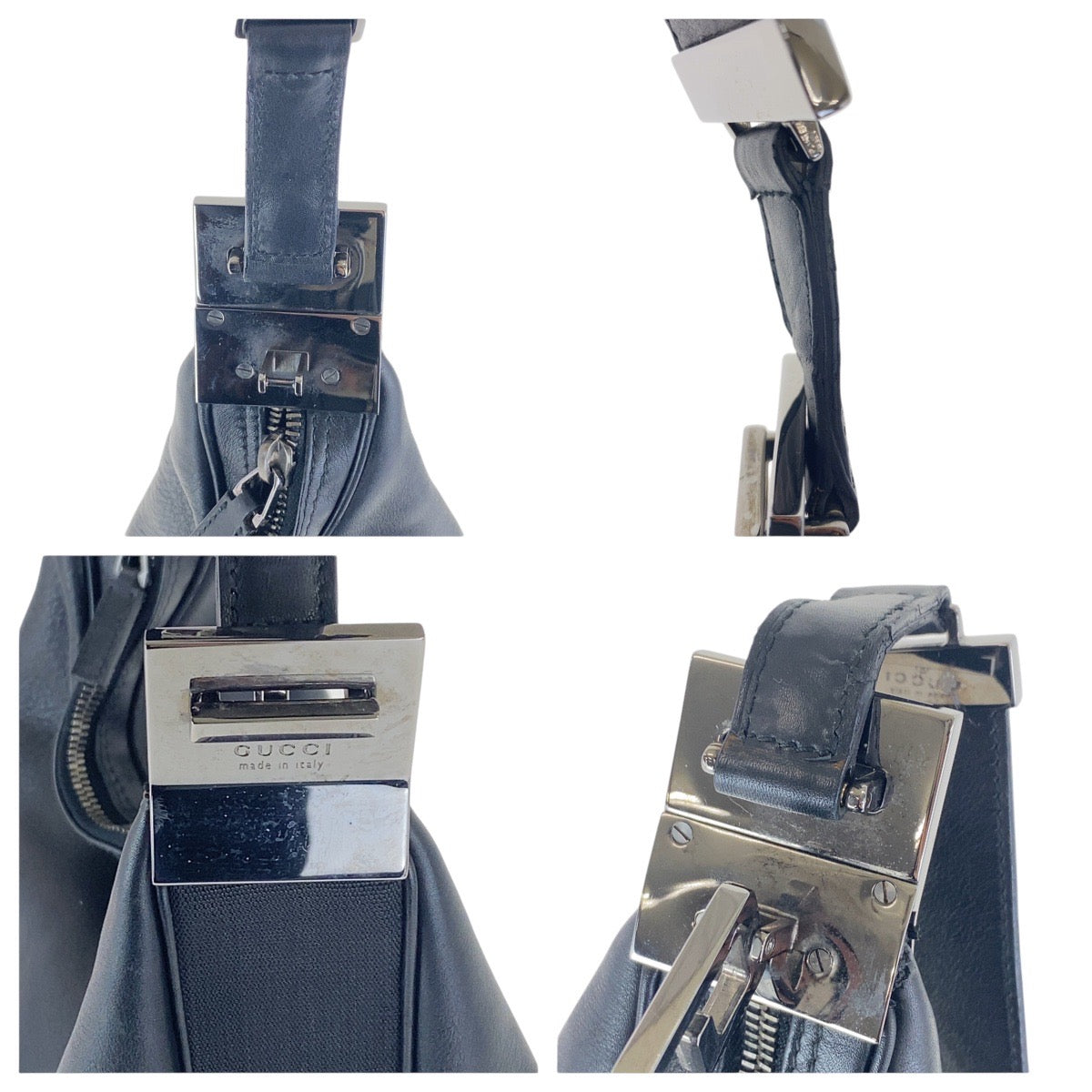GUCCI Shoulder Bag 001-3341 leather Black SilverMetal Women Used Authentic