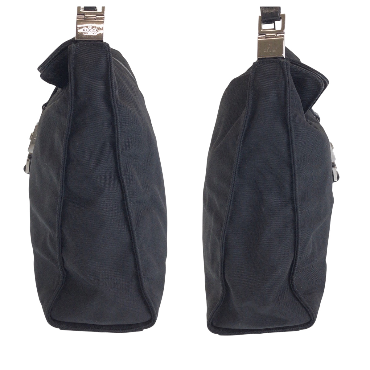 GUCCI Shoulder Bag 001 3355 Nylon Black Silver Metal Jackie Women Used Authentic