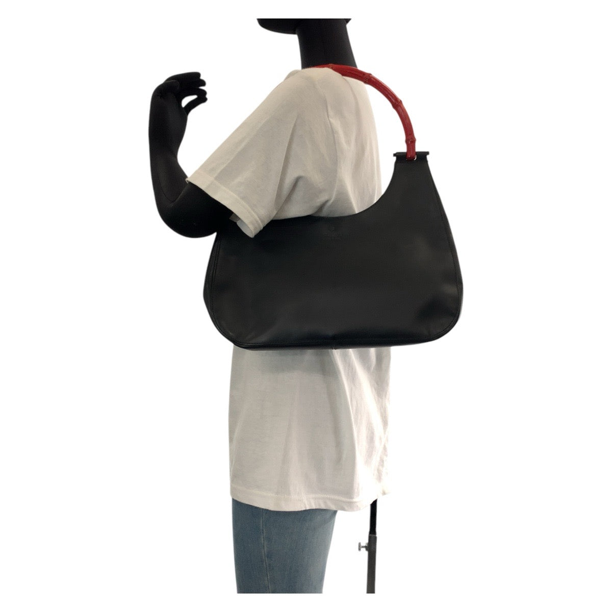 GUCCI Shoulder Bag 001 3739 leather black Bamboo Women Used Authentic