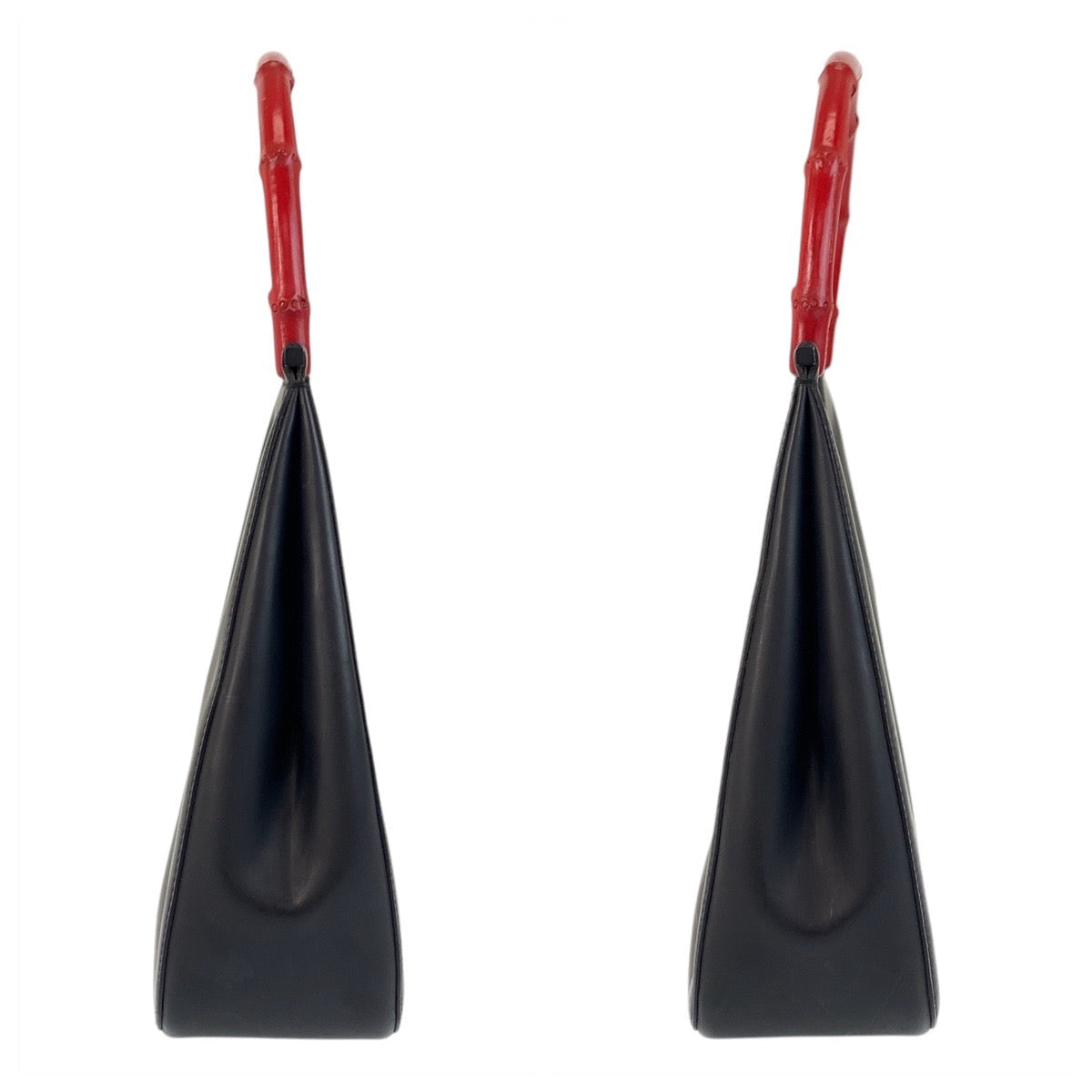 GUCCI Shoulder Bag 001 3761 leather Black black red Bamboo Women Used Authentic