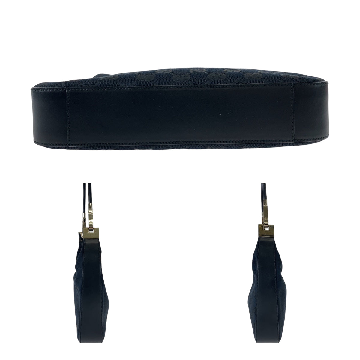GUCCI Shoulder Bag 001 3812 GG canvas, leather Black SilverMetal Hobo Shoulder Bag Handbag Women Used Authentic