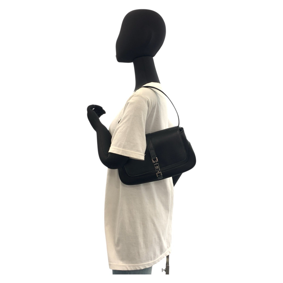 GUCCI Shoulder Bag 001 3824 leather Black SilverMetal Jackie Women Used Authentic