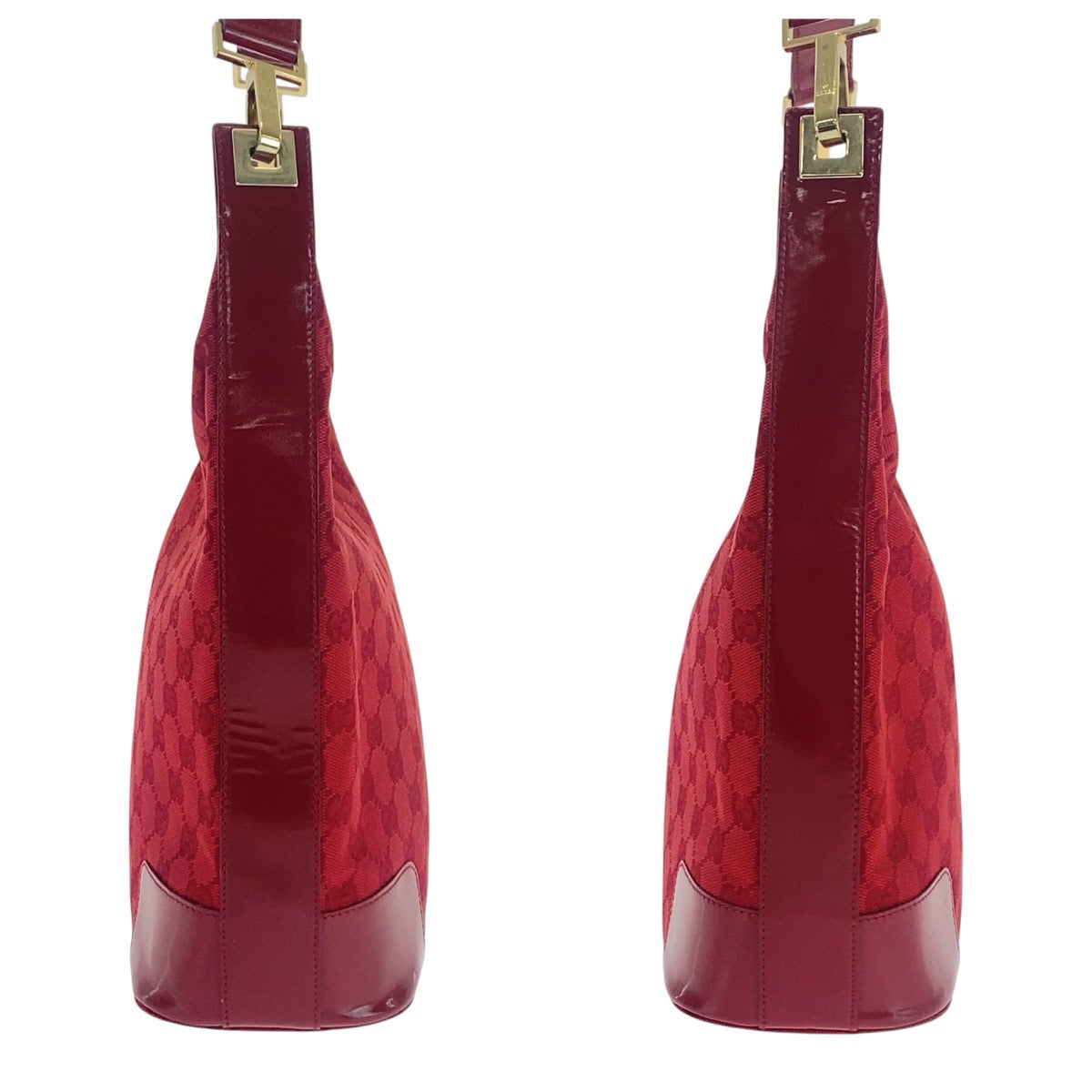 GUCCI Shoulder Bag 001 4204 GG canvas, enamel Red Gold Metal Shoulder Bag Hobo Women Used Authentic