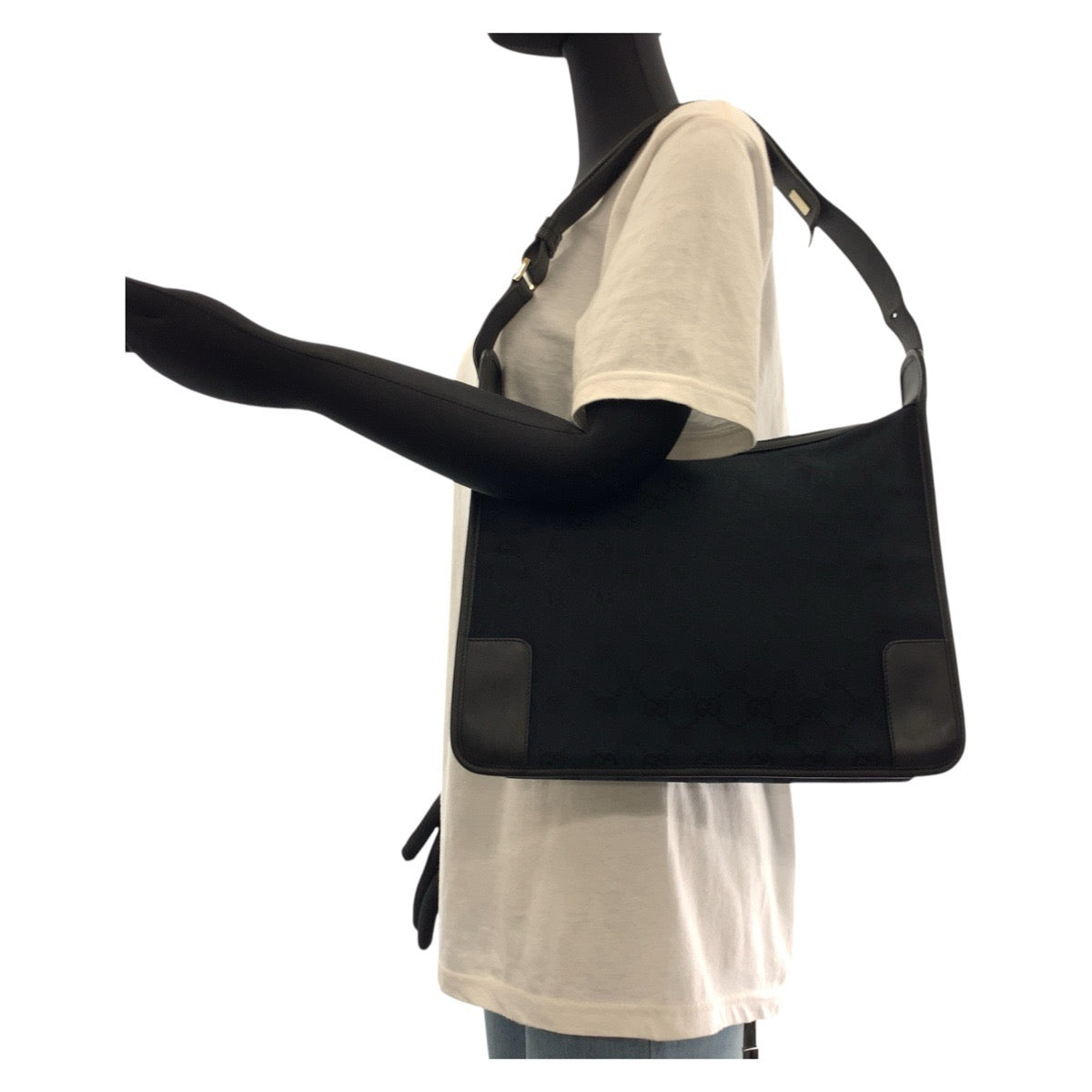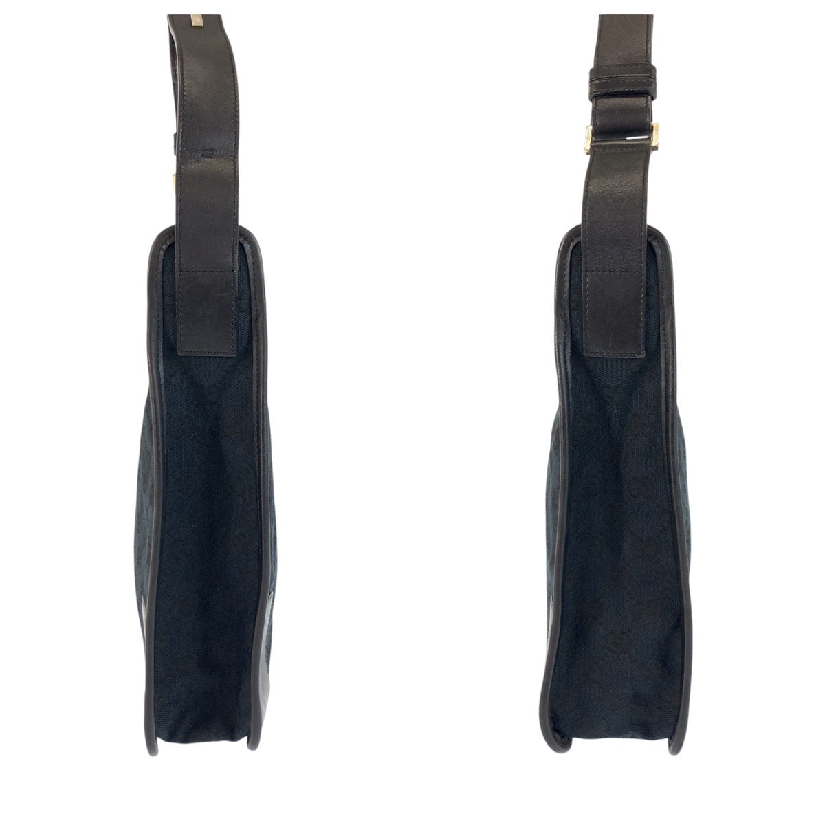 GUCCI Shoulder Bag 001 4205 GG canvas, leather Black SilverMetal Women Used Authentic