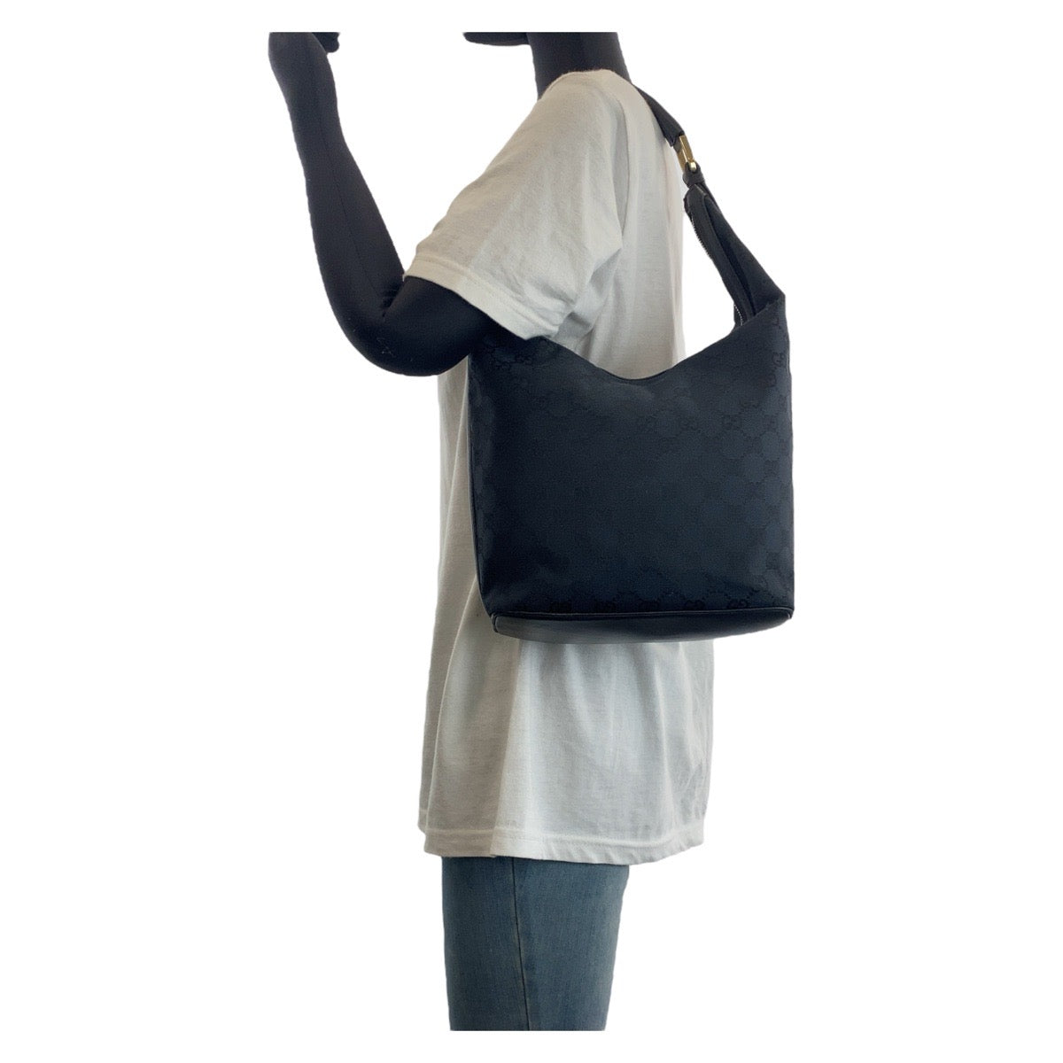 GUCCI Shoulder Bag 001 4288 GG canvas, leather Black GoldMetal Shoulder Bag handbag Women Used Authentic