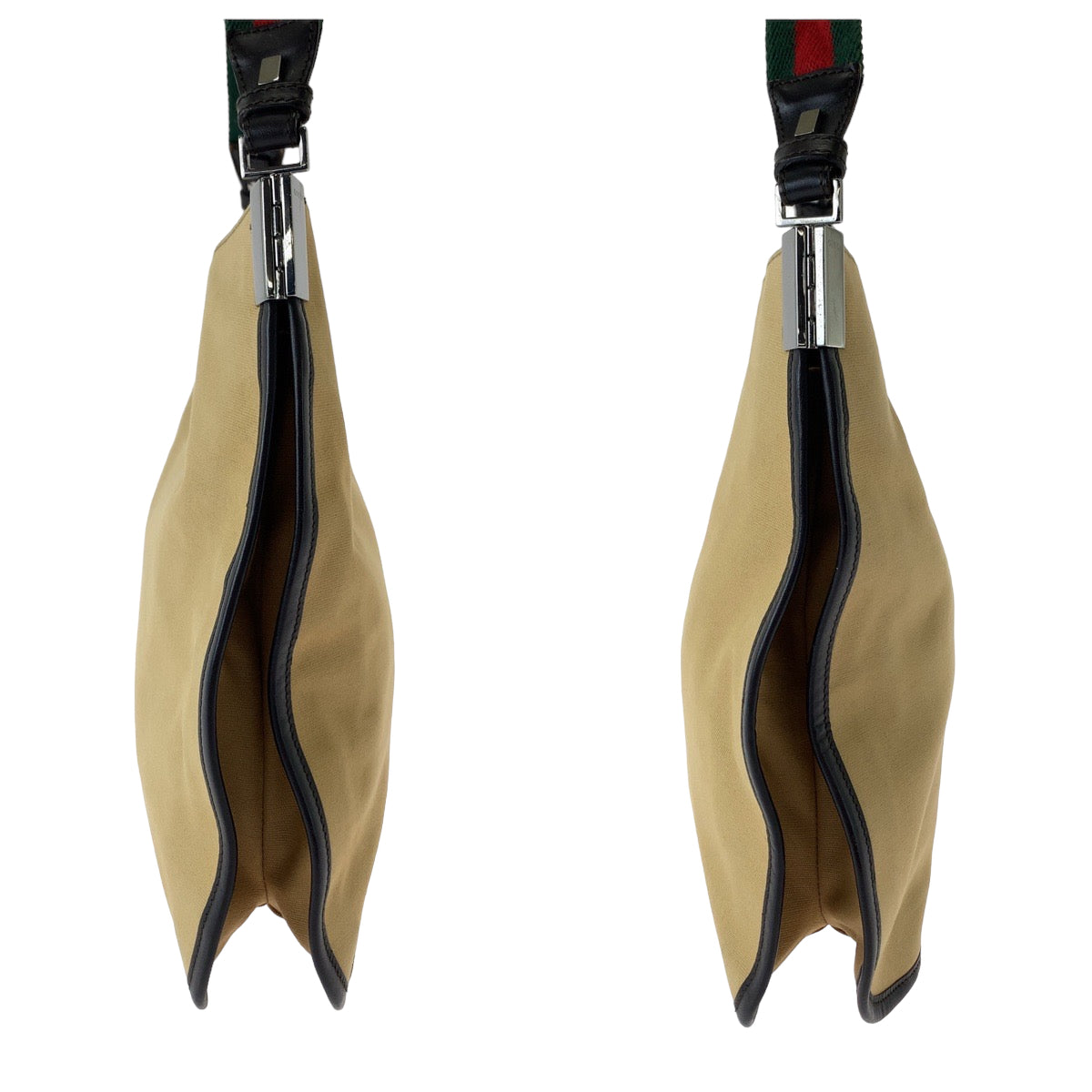 GUCCI Shoulder Bag 001 4321 canvas Beige Red Green SilverMetal Hobo One Shoulder Bag Sherry line Women Used Authentic