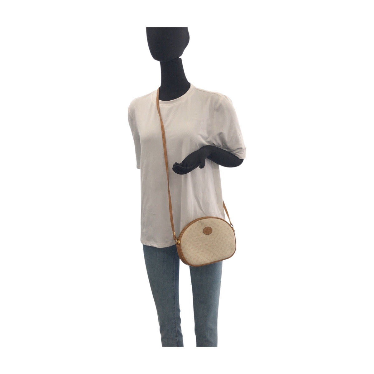 GUCCI Shoulder Bag 007 89 0094 PVC Beige Brown Gold Metal Old Gucci