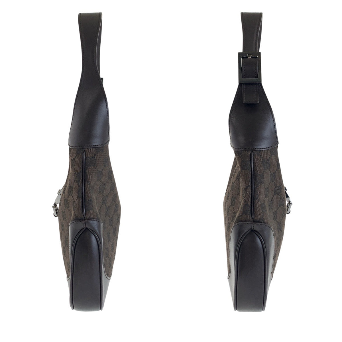 GUCCI Shoulder Bag 00963 GG canvas, leather Brown Silver Metal Shelly Line Jackie Women Used Authentic