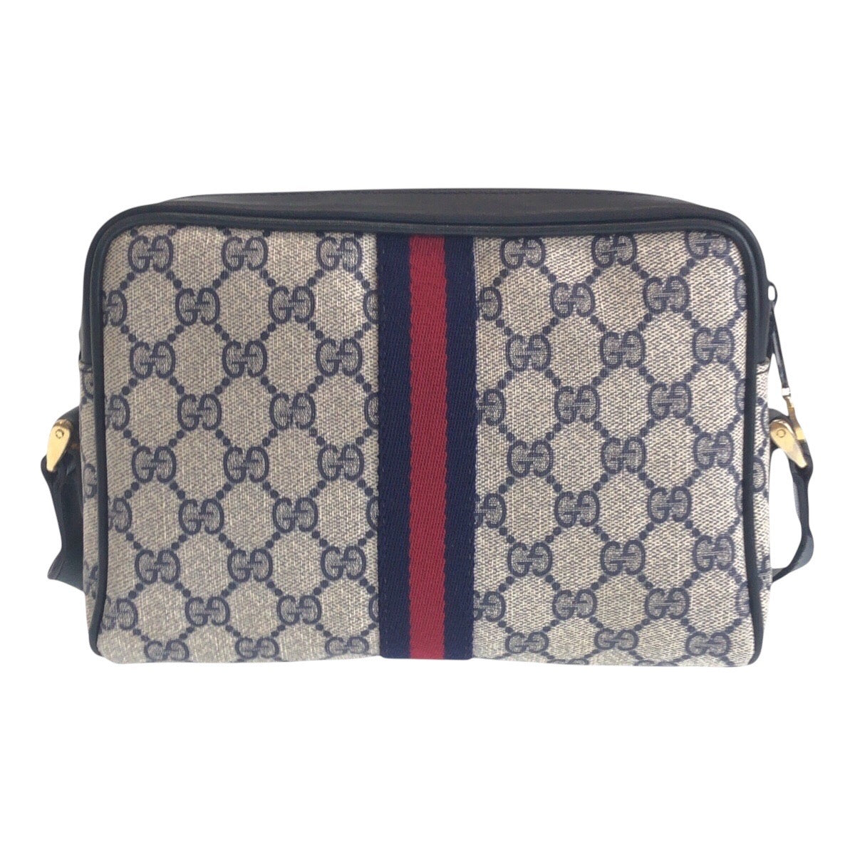 GUCCI Shoulder Bag 010 378 GG Supreme canvas, leather Gray Navy Gold Metal Shoulder Bag pochette Sherry Line Old Gucci Women Used Authentic