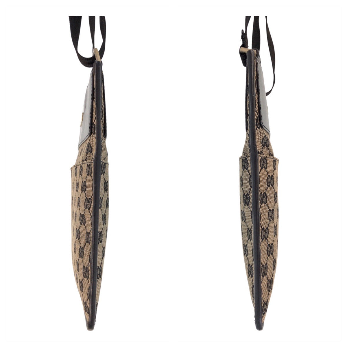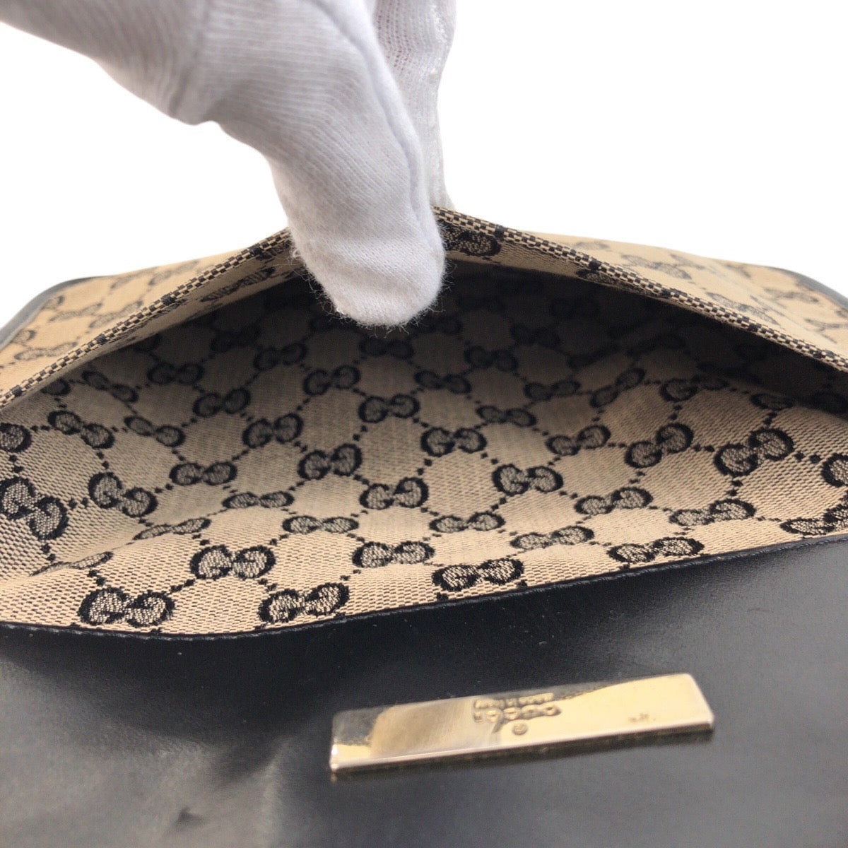 GUCCI Shoulder Bag 019 0348 GG canvas, leather Beige black Shoulder Bag pochette Women Used Authentic