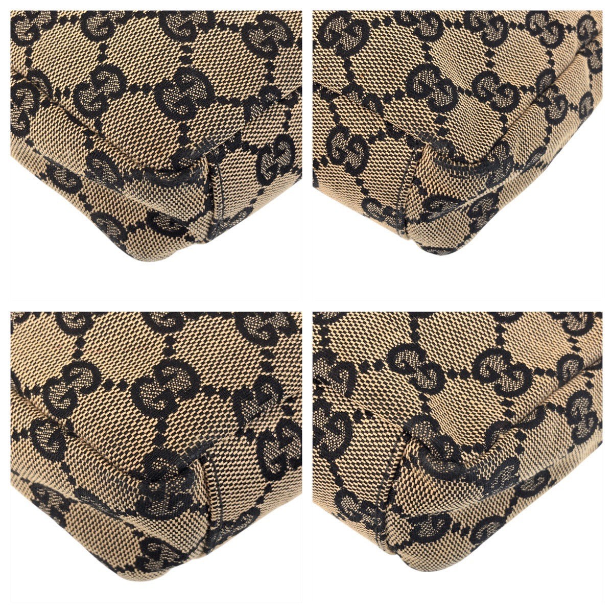 GUCCI Shoulder Bag 019 0433 GG canvas Beige Black Gold Metal