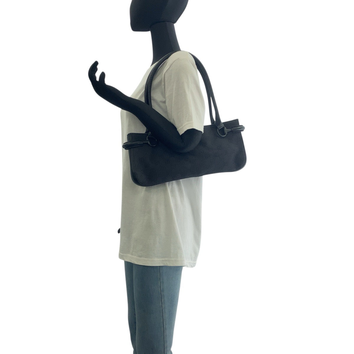 GUCCI Shoulder Bag 101345 GG canvas, leather Black black Shoulder Bag Tote Bag Women Used Authentic