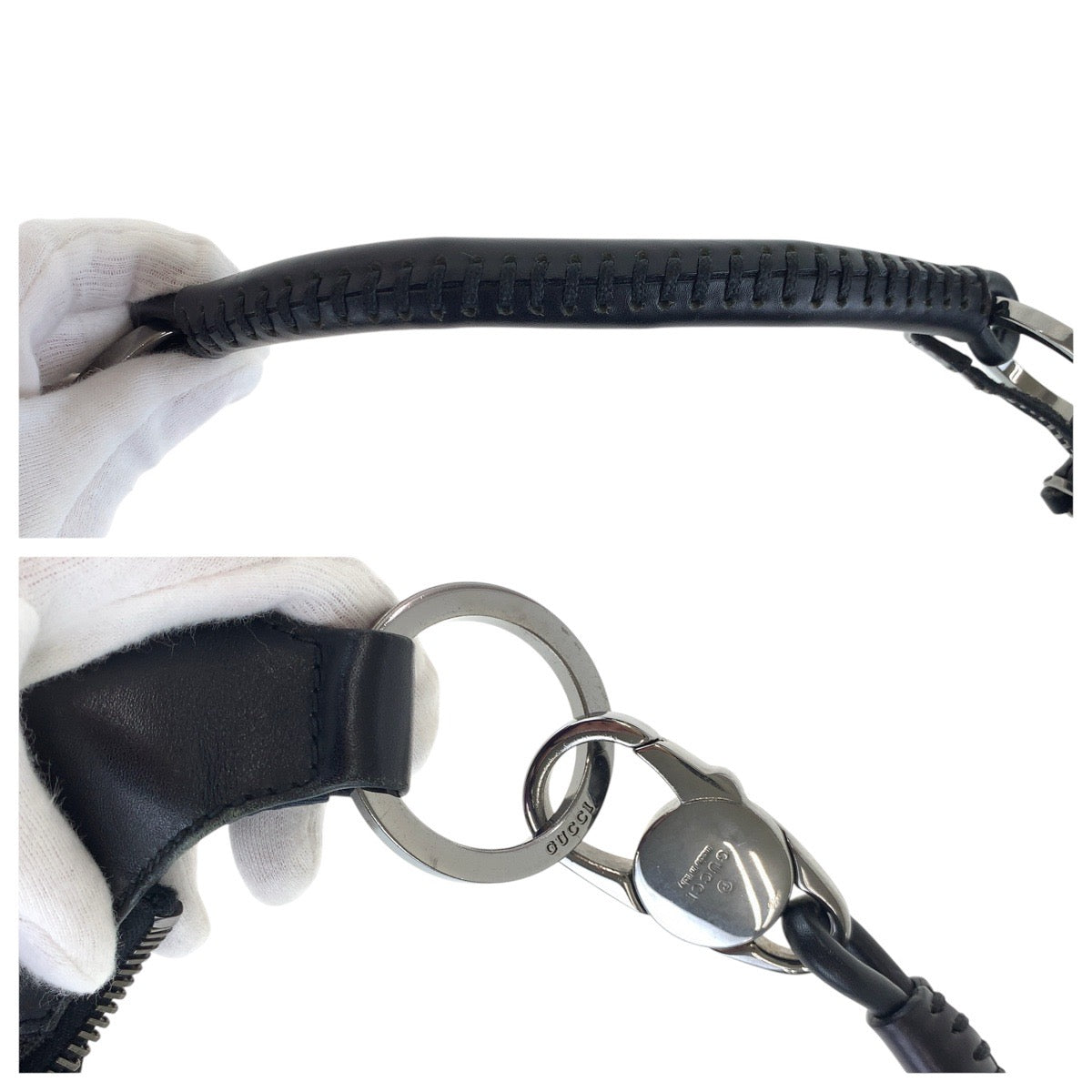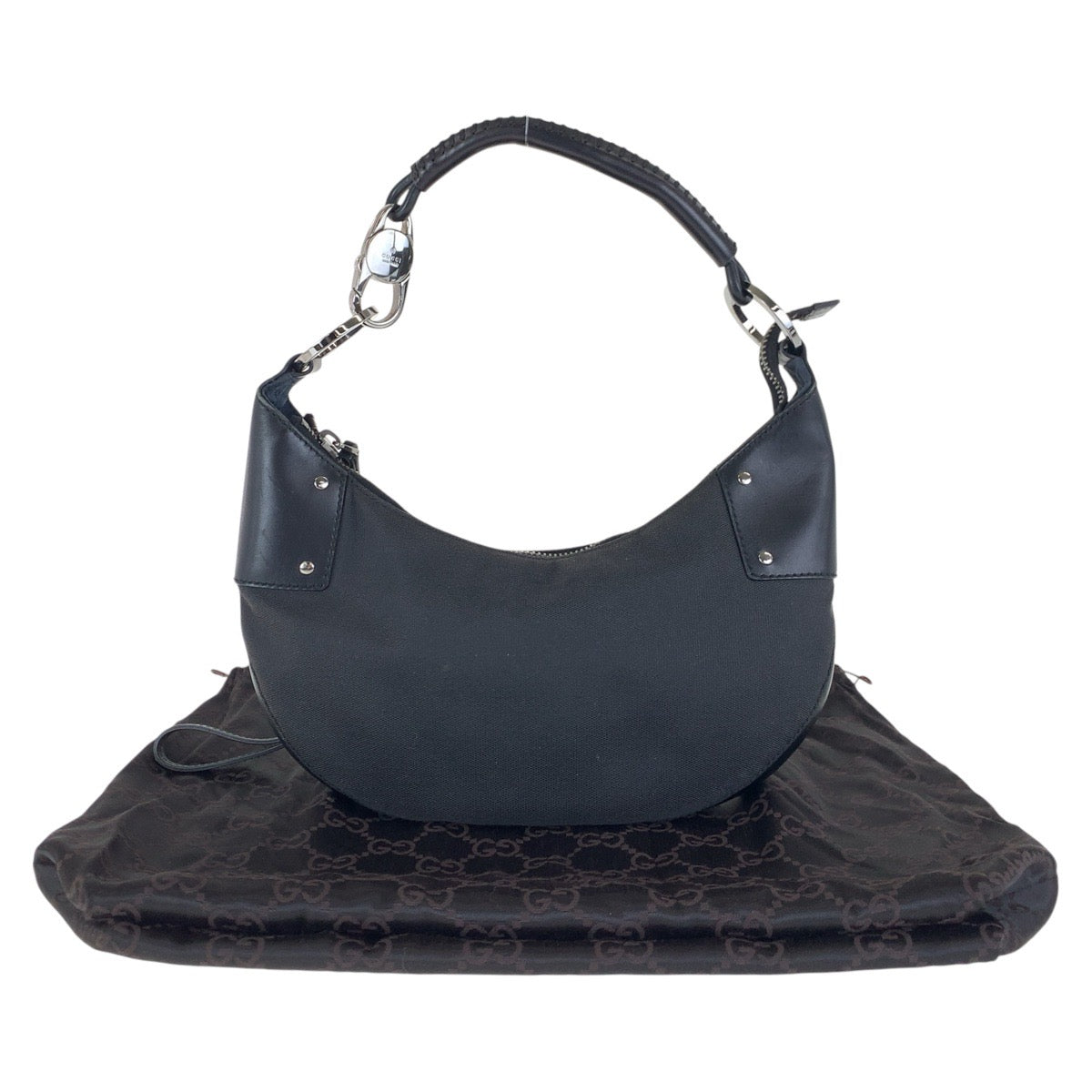 GUCCI Shoulder Bag 109208 Canvas, Leather Black Silver Metal Hobo Women Used Authentic