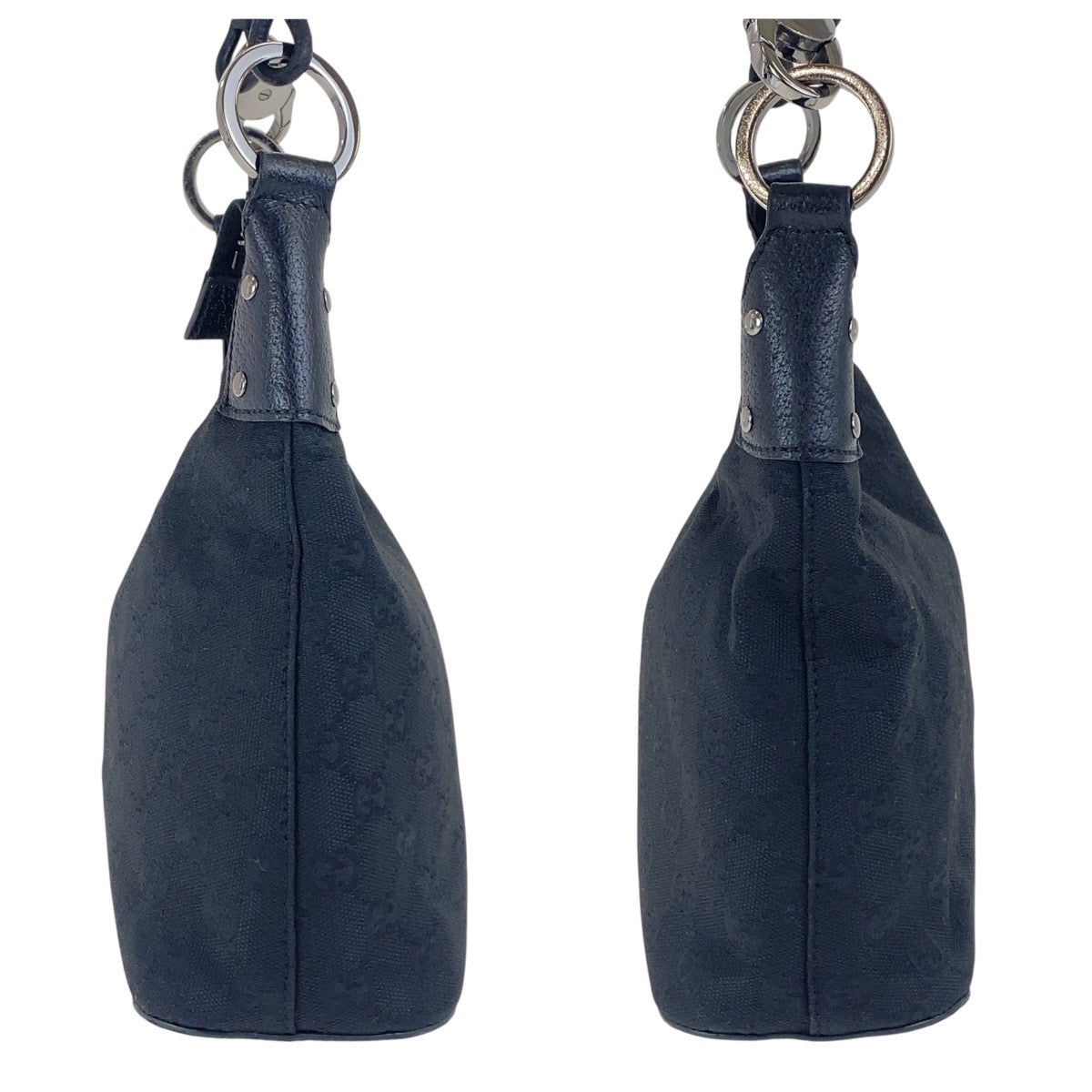 GUCCI Shoulder Bag 115002 GG canvas, leather Black SilverMetal Hobo Shoulder Bag Women Used Authentic
