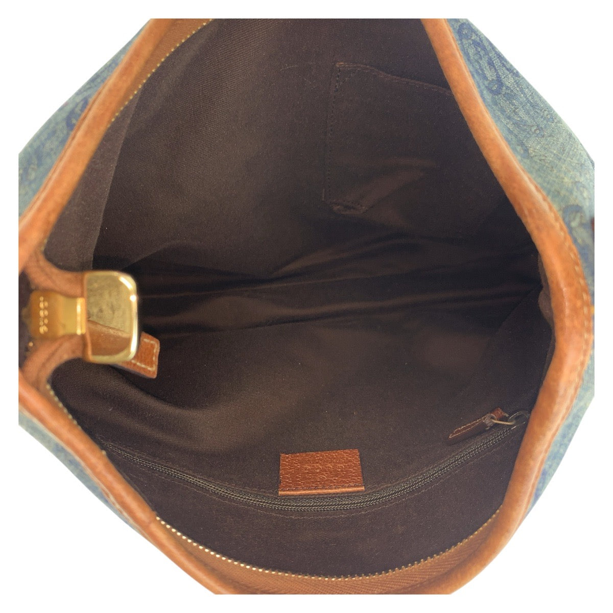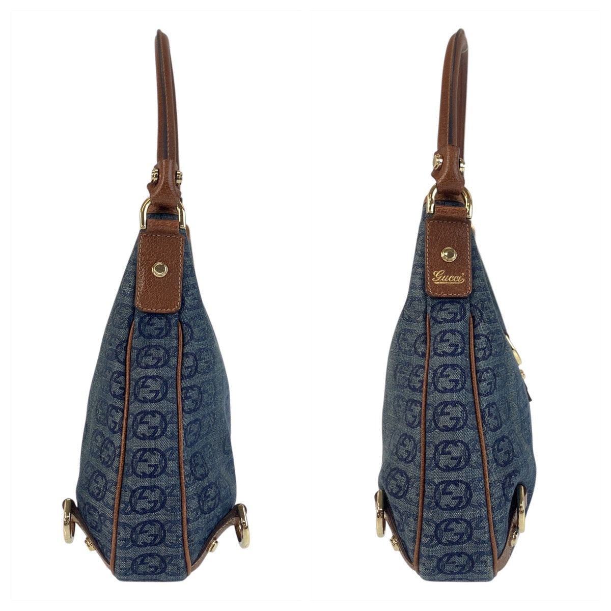 GUCCI Shoulder Bag 130738 canvas Blue Brown Gold Metal Abby Interlocking