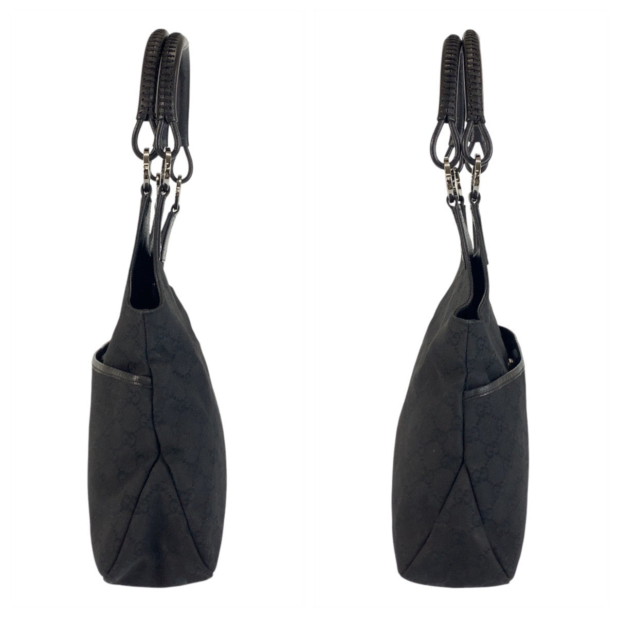 GUCCI Shoulder Bag 132260 GG canvas, leather Black SilverMetal Shoulder Bag Tote Bag Women Used Authentic