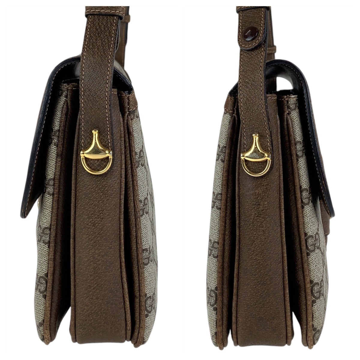 GUCCI Shoulder Bag 14 01 4084 GG Supreme canvas, leather Brown Gold Metal Shoulder Bag pochette Old Gucci Women Used Authentic