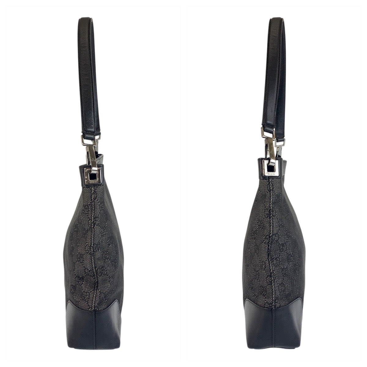 GUCCI Shoulder Bag 143745 GG canvas, leather Black SilverMetal Women Used Authentic