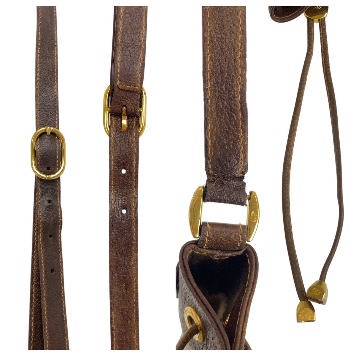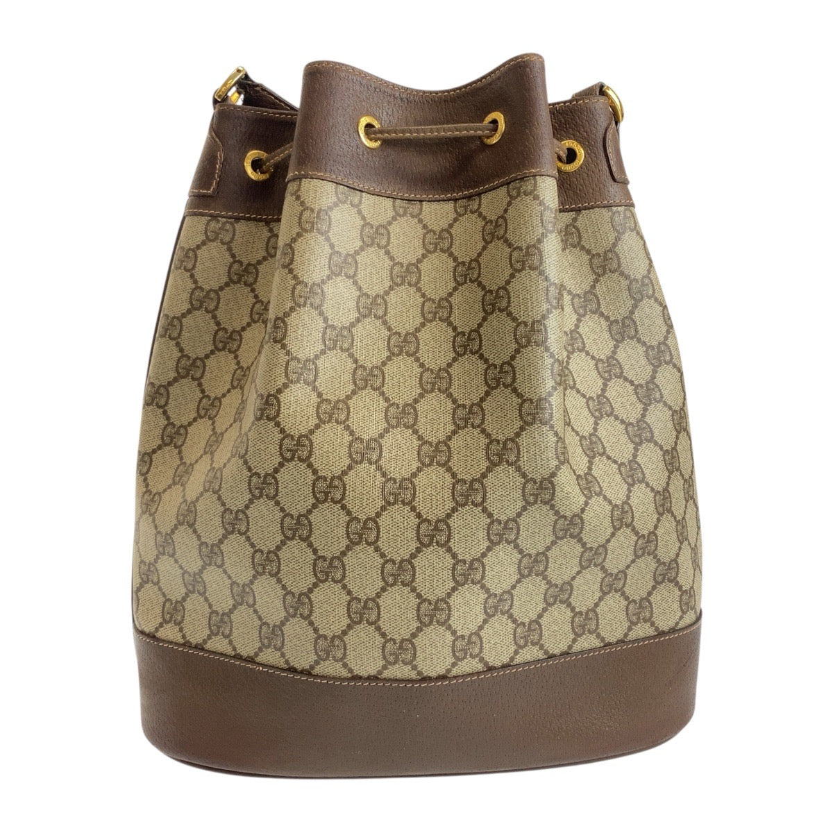 GUCCI Shoulder Bag 164 02 085 GG Supreme Canvas Beige Brown Gold Metal Old Gucci Shelly Line