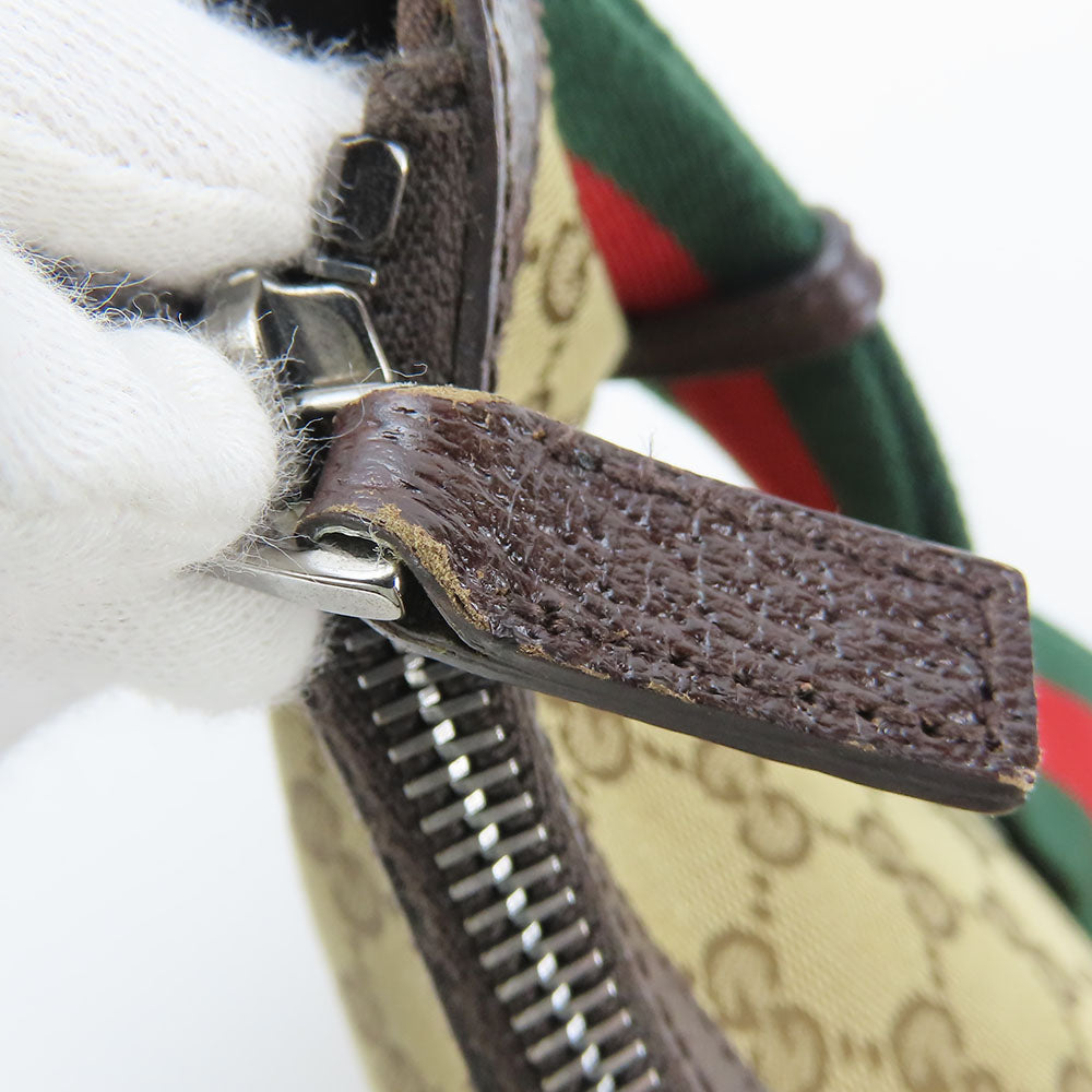 GUCCI Shoulder Bag 182092 GG canvas, leather beige Sherry line Women Used Authentic